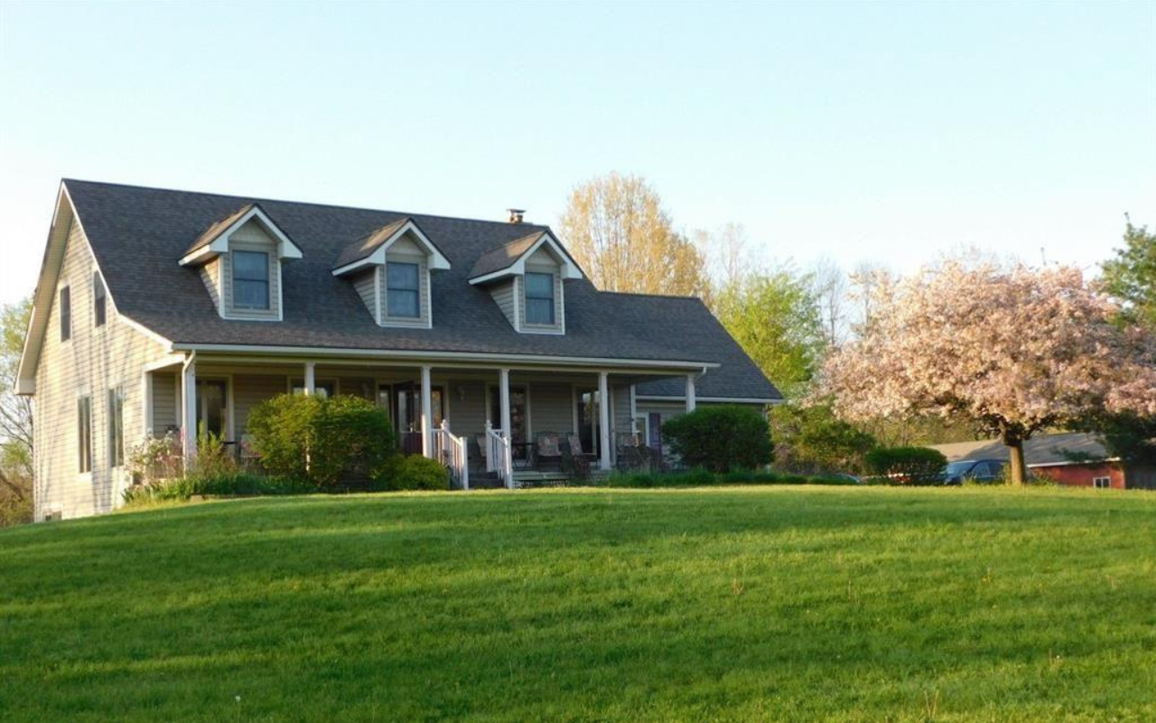 This sprawling Cape Cod-style home is set on over 51 acres of rolling hills and woods. The residence features a functional layout with spacious bedrooms, high-end finishes, and energy-efficient systems. A large property with plenty of space for outdoor activities and privacy, this home combines comfort with rural charm.