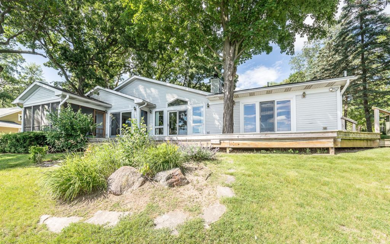 This peaceful lakefront ranch home offers a serene setting with stunning water views. Overlooking a motor-restricted lake, the property provides a quiet retreat away from the noise of all-sports lakes. The home features an open layout, a spacious deck for enjoying sunsets, and a screened-in porch for relaxing evenings. The master suite includes a private lakeside entrance, allowing for seamless indoor-outdoor living. The property also comes with an attached and detached garage, as well as shared ownership of a small lot across the road. Perfect for those seeking tranquility and natural beauty, this home is a rare find in Livingston County’s lakefront market.