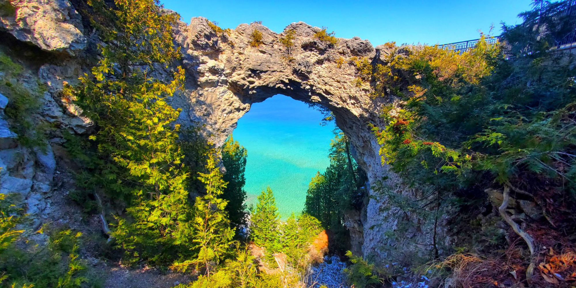 Put Arch Rock on your must-see list – it’s arguably Mackinac Island’s most iconic natural feature. Arch Rock is a stunning limestone arch formation soaring high above the shoreline on the island’s southeast side. This impressive arch spans about 50 feet across and rises roughly 140 feet above the water, creating a dramatic “window” through which you can glimpse Lake Huron’s vivid blue expanse far below. It’s one of the most photographed spots on Mackinac (for good reason – the views are breathtaking). You have a couple ways to visit Arch Rock: If you’re biking the perimeter road, you can stop at the base of Arch Rock along Lakeshore Drive and look up at it from below – you’ll see the stone arch towering above you against the sky. Then, to get the classic view from the top, either climb the staircase from the road (prepare for a bit of a workout!), or approach by carriage tour or bike via Arch Rock Road in the interior. At the top, there’s a viewing platform where you can stand under a canopy of trees and gaze out through the arch at the sparkling lake. On a clear day, the water is a brilliant turquoise color through the limestone frame – absolutely gorgeous and Insta-worthy. Plaques will share some Native American legends about how Arch Rock was formed (local lore ties it to spirits and romance). Whether you’re into geology, photography, or just enjoying epic vistas, Arch Rock won’t disappoint. It’s one of those Mackinac marvels that make you pause in awe of nature’s handiwork. Don’t leave the island without seeing it from up high – the panorama is something you’ll remember long after you ferry back to the mainland.