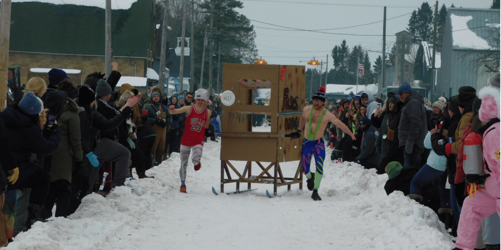 The Trenary Outhouse Classic represents Michigan's most gloriously absurd winter tradition, where the 33rd annual event celebrates both America's 250th birthday and the Upper Peninsula's refusal to take February seriously by racing homemade outhouses mounted on skis down Main Street in downtown Trenary. This 2026 event embraces a patriotism theme with organizers encouraging spectators to dress as patriotically as possible for the best-dressed spectator competition, adding another layer of creativity to an event already bursting with personality. Teams compete across seven age categories ranging from 5 years old to 50-plus, with prizes awarded not just for fastest times but for categories like best fur or faux fur hat, ensuring that speed-challenged but creatively excellent teams still earn recognition. The outhouses themselves range from simple wood constructions to elaborate creations using materials like cardboard, plastic, grand piano crates, and whatever else builders imagine will survive being pushed 500 feet through snow at questionable speeds by two runners. Gates open at 11:00 AM for those wanting to claim prime viewing spots along the downtown race course, with opening ceremonies at 1:30 PM building anticipation before races begin at 2:00 PM and continue until every age category crowns champions.