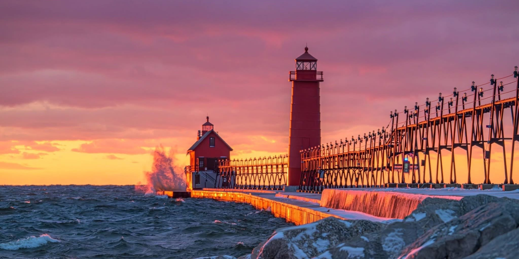 - Must-Do: Hit the Grand Haven State Park beach, where soft golden sand stretches out alongside the south pier. Walk the pier out to the Grand Haven South Pierhead Lighthouse, the long walk is rewarded with panoramic views and it’s a favorite spot for photos (especially at sunset when the sky ignites behind the lighthouse). As dusk falls, make your way to the Grand Haven Musical Fountain, a retro attraction from 1962. This fountain sits across the river and puts on a 20-minute water and light show synchronized to music each summer evening; it’s delightfully nostalgic and free to watch from Waterfront Stadium or the riverfront boardwalk. Kids will be dazzled, and adults might secretly love it too.