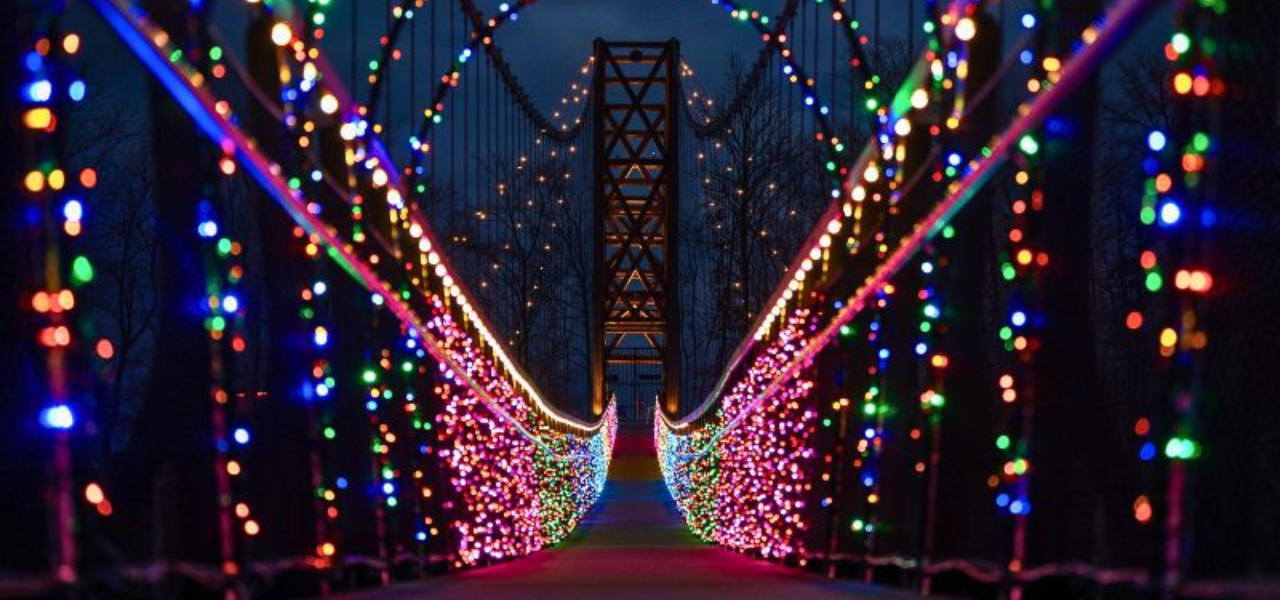 SkyBridge Michigan at Boyne Mountain is a Northern Michigan gem, boasting the world’s longest timber-towered suspension bridge. During the winter season, it transforms into a breathtaking holiday experience with its Lights in the Sky event. Over 150,000 sparkling lights illuminate the bridge, creating a magical pathway as visitors stroll high above the landscape. Perfect for a festive family outing or a romantic evening, this dazzling display offers a unique blend of adventure and holiday cheer that’s not to be missed.