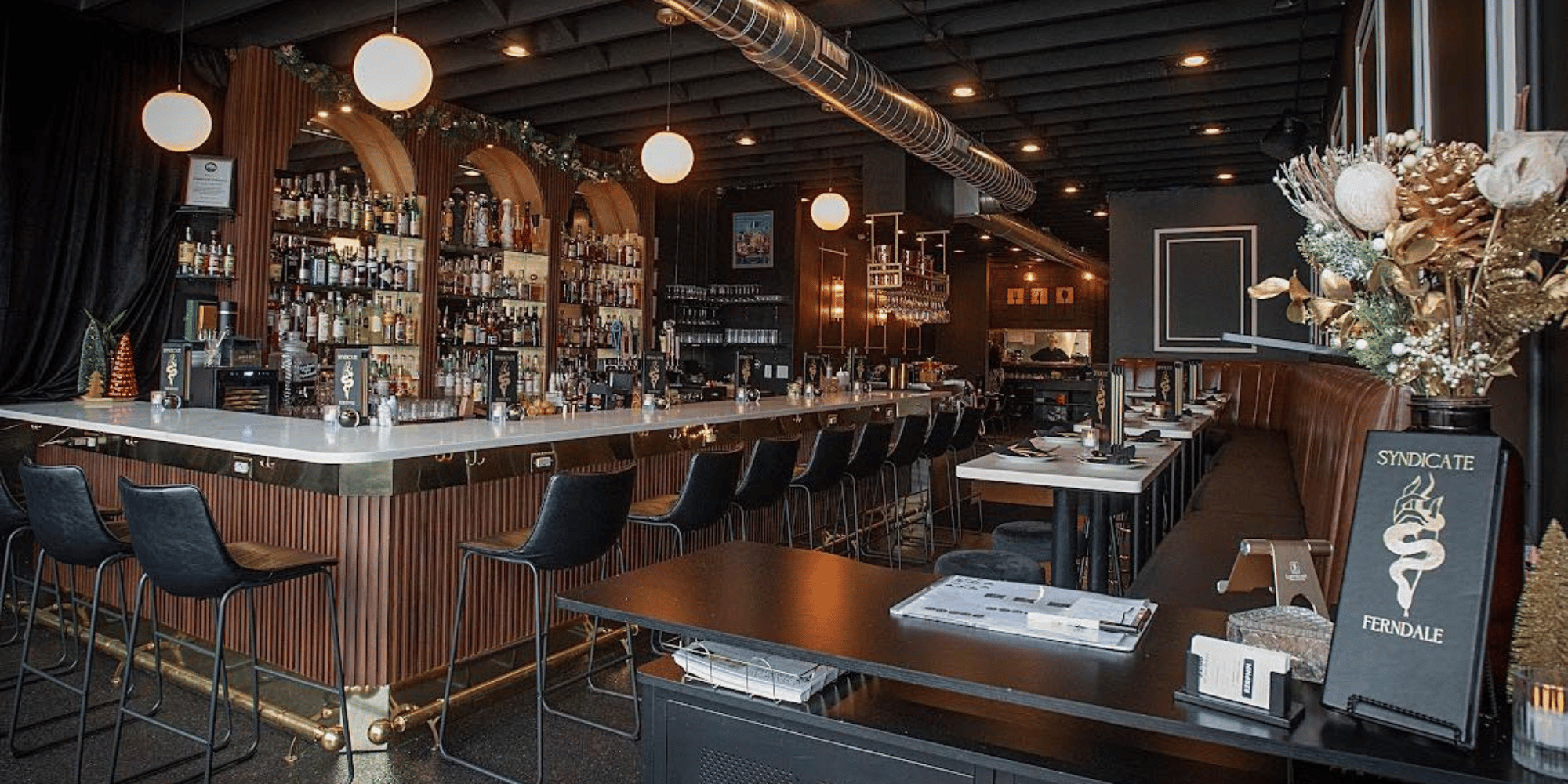Opened in 2023, Syndicate has quickly become one of Ferndale’s go-to cocktail destinations, blending sleek industrial aesthetics with whimsical presentation. Signature drinks, like the shimmering Violet Stratosphere, arrive with theatrical flair, often garnished with edible glitter or unexpected botanical touches. A dog-friendly patio, shareable snacks, and a menu that walks the line between playful and sophisticated make this a perfect mix of neighborhood comfort and cocktail artistry.