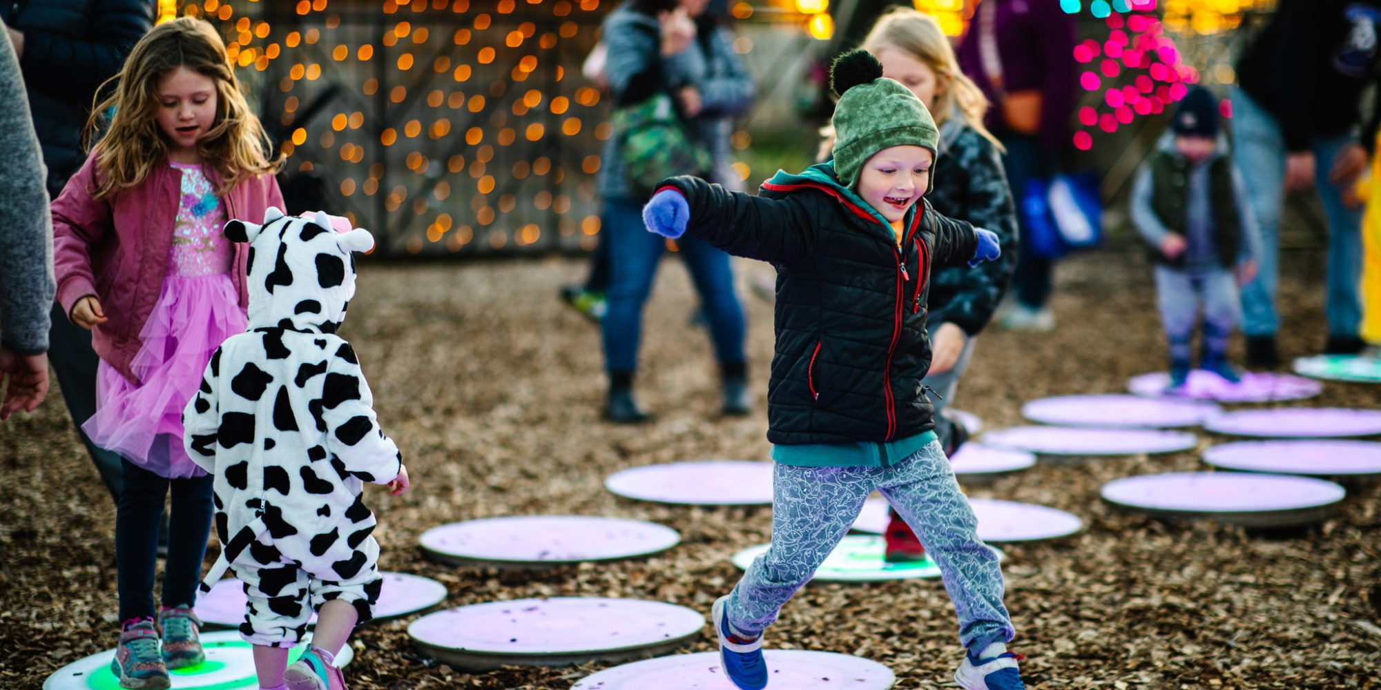 For young children (even those in strollers), the bright lights and gentle glow of the lanterns are captivating. Little ones might not catch all the Alice in Wonderland references, but they don’t need to – a giant glowing caterpillar or a colorful light-up flower is magical all on its own. The pace of the event is perfect for families: it’s a self-paced stroll, so you can go as slow or fast as you like. If your toddler wants to stare in awe at the “pretty lights” for five minutes, you can pause and enjoy without feeling rushed. There are also no jump-scares or overly dark elements – everything is whimsical and inviting, which means it’s not intimidating for kids. In fact, seeing other children in costume (don’t be surprised if you spot a few little Alices and Mad Hatters in the crowd!) and getting high-fives from the White Rabbit makes it very friendly. Strollers and wagons are welcome on the paths, and the walkways are mostly flat and accessible, so families with infants or grandparents using wheelchairs can navigate comfortably. (Pro tip: if you do bring a stroller, maybe decorate it with some battery-powered fairy lights for fun – we saw at least one family do this, adding to the festive feel!)