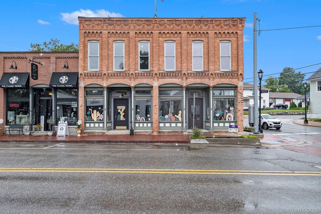 Motivated Sellers! Will look at offers and terms! The historical Village of Metamora is the backdrop for this beautifully restored and iconic building on a primary corner. A bicentennial Village with exceptional history and character, this structure began in 1879 with the stone blacksmith's shop moved to make room for this brick construction to house two storefront rooms and a public hall with offices on the second floor. Fast forward 100 years to its life as an architects' office and then fully renovated and retrofitted for the current law firm in 2002. The building first level is currently leased as a salon with a 1200 sq ft services area, four private rooms or offices, a half bath and kitchen. The second floor offers six exquisite offices, a long lobby with paralegal offices, large conference room with kitchen, bath and exceptional woodwork: hand carved lawyers paneling, 5 panel interior and exterior doors, shelving, bookcases, 14' high ceilings with moldings and trim and even a hand carved conference room table. Dressed in historical Metamora Hunt decor, this space is bright and inviting with easy access to the building with two staircases and an elevator. Recent improvements include a new roof, windows, exterior trim, and in the last four years restoration projects with brick and chimney tuck pointing. Beautifully maintained with negotiable possession, this multiple use building is in a popular, quaint Village 40 minutes to Birmingham with substantial free parking, shopping, dining and seasonal attractions, and the low Lapeer taxes our residents enjoy. A private tour will be accommodated with prequalified buyers. Any questions? We are at your service!