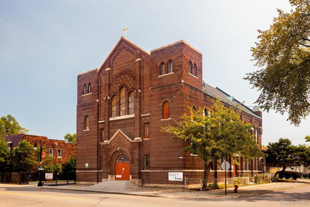 Formerly the home of St. Anthony’s Church, 3553 W. Vernor is located in Detroit’s Mexicantown neighborhood, just a few blocks from Ford’s Michigan Central Station. The building is approximately 11,282 square feet and has been beautifully maintained with updated electrical and HVAC systems. It features an impressive, light-flooded event hall with original hardwood floor, chandeliers and arched windows; private offices; former living spaces; and an adjacent 16-car parking lot.