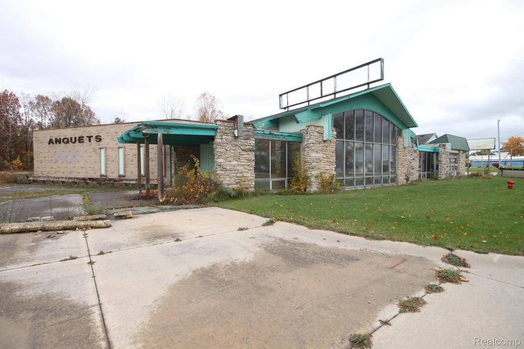 Spacious 14,000 sqft commercial area, awaiting your custom finishing. One section previously served as a banquet hall with a pre-installed kitchen. A small space on the north side is currently leased to a Coney Island restaurant. Conveniently situated near the St. Clair river amidst various businesses and factories. The flat roof has collapsed in one area and requires significant repairs. The seller is motivated and eager to make a deal! LAND CONTRACT TERMS ARE AVAILABLE