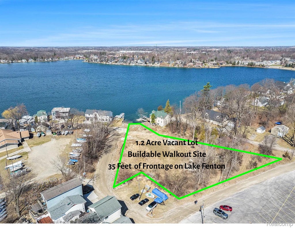 Lake Fenton Waterfront Huge Lot Landscape earth work on-going - Removing hill and shed blocking view to the water, installing limestone retaining wall. This rare 1.3-acre lot on Lake Fenton has 35 feet of frontage, is walkout-ready, utilities on site, and tree-lined privacy. Nearly impossible to find vacant land like this on Lake Fenton — build your dream home, weekend spot, or next great flip. This parcel allows space for both house and large garages/pole building. There is currently a private boat launch at the lakeside.