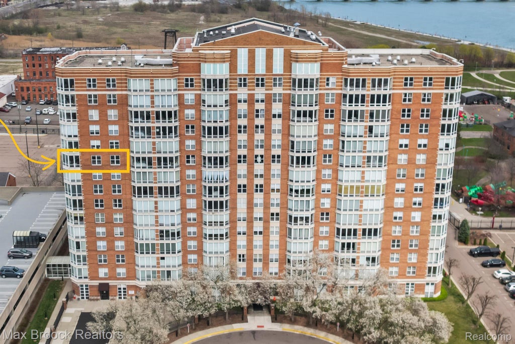 Downtown Detroit is set for another explosive makeover as the Riverfront continues to be transformed into one of the Countries most beautiful waterways. Located perfectly between Belle Isle and Downtown, Harbortown is a gated community comprised of three condo buildings and a variety of townhomes. This neighborhood features 24/7 security, assigned parking, pools, fitness centers, a beautiful pond, tennis courts, private marina, walking paths, and direct riverfront access! This is not just a place to live, THIS is a LIFESTYLE! Perched on the 10th floor of the 15 story tall Great Lakes Tower, sits Unit 1003. This 2 bedroom, 2 bathroom 1,214 square foot corner unit features sweeping views from Canada and the Detroit River, all the way across Downtown Detroit and even directly North over Martin Luther King High School. With only one neighbor, this condo will provide you with a sanctuary of peace. The open concept living area features floor to ceiling windows, hardwood floors, spacious dining room area, and built ins. The updated kitchen features dark wood shaker style cabinets, stone counters, and stainless steel appliances. The current kitchen island is excluded from the sale but gives you the perfect view of what could be. The first bedroom currently acts as the guest room, play room for the grandkids, and office. With double doors, it acts as an extension of the entry way, giving the impression that the unit stretches out right through the windows. The spacious main bathroom has lots of counter space and brand new shower. The primary bedroom has tons of space for your largest bedroom set and then some. Double closets lead to the primary ensuite bathroom with a large vanity and tile shower. The HOA includes water, gas, waste removal, security, pools, tennis courts, exercise room, all common area maintenance inside and outside of the building and parking garage.