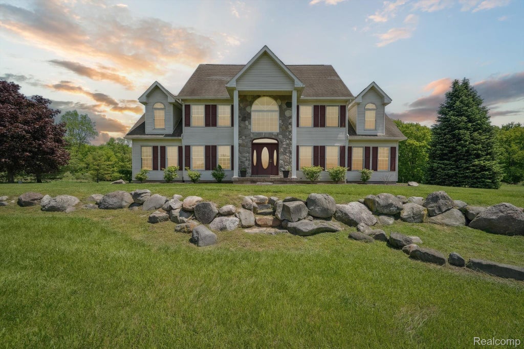 Check out this remarkable home on 10 acres in Metamora! This grand colonial features ample living space with over 2,600 sq ft of living space and 5 bedrooms. The main floor has a large, open floorplan with kitchen flowing to a large dining area, an office, and one bedroom. The expansive living room features soaring ceilings and a gas fireplace, perfect for the cooler nights. Upstairs are 4 more large bedrooms including a master with master bath and a separate 2nd full bath. Outside, approximately 4 acres of the property is heavily wooded and has been successfully hunted in the past - deer, turkey, and other wildlife are abundant. The 30x50 pole barn features a concrete floor, wood stove, electric and water and is perfect for tending animals and hosting events. All of this located a short distance from M-24 and Rochester Rd and the quaint Villages of Dryden and Metamora!