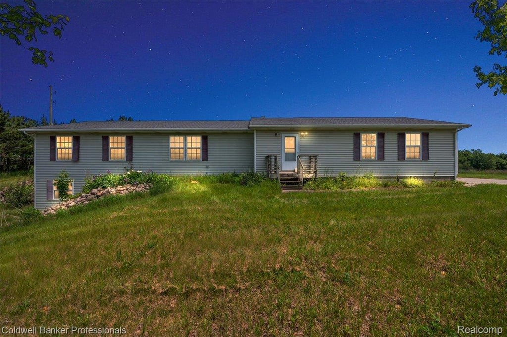 Welcome to North Branch Twp. Home of the Bronco's an award-winning school system. North Branch is a quaint little village at the core of the community, are its farms. This home is nestled high on a hill, located on 3.5 acres surrounded by farm land. Enter the property and follow the driveway to the top of the hill, passing the horse paddock and horse shed. When you reach to home at the top of the hill, you will not miss the 28 x 80 ft. heated and cooled pole barn. There is new cement in and around the barn and across the back of the home, where there is a large patio. Enter the attached 2-car garage and then enter the home. You will be greeted by a large foyer for both the front and garage doors. The space is large enough to set up a small office area. Follow the dark vinyl plank flooring that flows through the home, pass the updated full bath and the laundry room to the kitchen. This charming kitchen has an abundance of oak cabinets and a floating island with a granite countertop. The kitchen is large with room for a large table. Just across the hall is the very large living room. (19 x 14). Down the hall are 3 large bedrooms and another full bath. The basement is a large, insulated, unfinished walkout. Bring the kids, the animals, this home has such possibilities. ALL INTERESTED PARTIES MUST BE ACCOMPANIED BY A LICENSED AGENT. Seller will look at all offers.