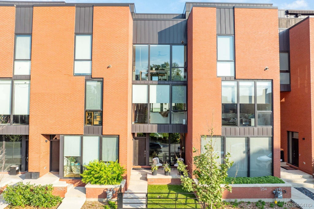 Experience next level city living in this 4-story showpiece by Tiffany Jane Interiors, featuring an award-winning rooftop speakeasy lounge. Located in the heart of Brush Park, this 2-bedroom, 2 full/2 half bath townhouse combines bold design with everyday luxury. Highlights include exposed brick, floor-to-ceiling windows with motorized shades, a custom partition wall leading up the third floor staircase, Sonos sound system, and designer lighting throughout. The chef’s kitchen impresses with a 12-ft quartz waterfall island, brushed slate appliances, and built-in pantry storage. The third floor offers two spacious bedrooms with custom walk-in closets, a discreet laundry area, and a sun-drenched primary suite with city views and spa-like bath. The crown jewel, recognized by Detroit Design Magazine, the top floor speakeasy with built-in back bar, half bath, and access to two expansive rooftop terraces with composite decking and unbeatable views of downtown Detroit. There is an attached 2 car garage with EV charger. This unit resides in the City Modern development, which provides 24-hr security. NEZ tax abatement through 2036 will save you thousands of dollars. Walkable to top restaurants, all three sports stadiums, and cultural icons.