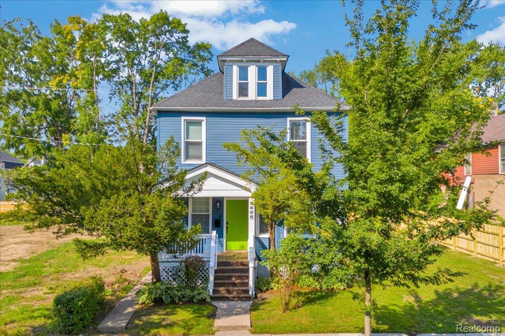 Welcome to 2543 Beals, a character-filled, 3-story home nestled in the heart of Detroit’s Islandview neighborhood. Adjacent lot 2549 Beals is included in the sale offering about 60 ft of frontage off Beals street. This blue sided 4-bedroom, 2 full bath residence w/ eye-popping green painted front door & pewabic pottery street address numbers offers the perfect balance of thoughtful updates & original charm. Step inside to discover dark-stained oak floors throughout, a generous open foyer that flows effortlessly into the dining & kitchen areas. Newer windows throughout that flood the space w/ natural light. The kitchen features black granite countertops, a gas range w/ hood, dishwasher, full standing refrigerator, & classic tile flooring— anchored by a striking exposed brick accent wall. Updated light fixtures add a modern touch, while a full bathroom w/ a standing shower & a tiled laundry room w/ gas hookup round out the entry level floor.