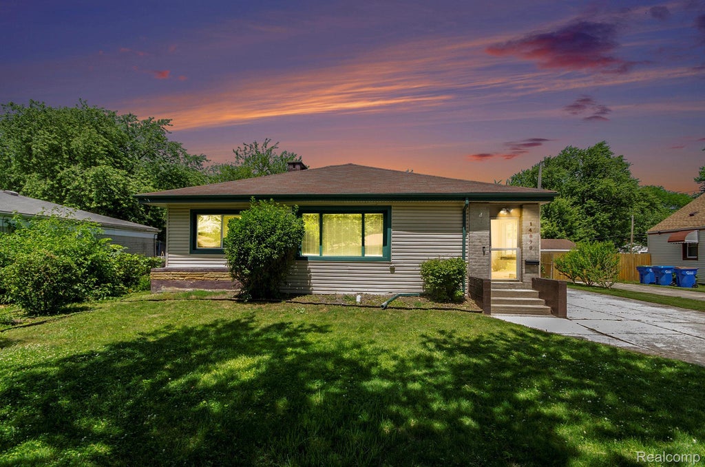 Motivated Seller! Will consider a Land Contract. Charming 3-bedroom ranch loaded with character. Step into a spacious living room featuring beautiful coved plaster ceilings, trendy dark wood floors, glass block accents, recessed lighting, and a cozy natural fireplace as the focal point. The bright enclosed front entry with ceramic tile makes a great mudroom or sun-filled plant space. A cozy library/office offers built-in bookcases and unique glass block design—ideal for working from home or relaxing with a good book. Could also use this space to expand the primary bedroom into an en suite. The large, sunny kitchen features wood laminate flooring, stainless steel appliances including a new wall oven, gas cook top, refrigerator and built-in dishwasher—perfect for everyday cooking or weekend hosting. Walk out to your large backyard deck—great for summer BBQs, morning coffee, or entertaining under the stars. The 2-car detached garage is accompanied by two large unfinished bonus spaces—including one 28’x16’ room with its own fireplace! Use them for a workshop, boat storage, gym, or even create your dream outdoor bar/entertainment area. Solid concrete block & stone construction make this home energy-efficient and built to last. All of this in a quiet, established neighborhood with quick access to I-696, I-94, top-rated schools, shopping, and major employers. Only 2 blocks from Trombly Park Easy access to Lake St. Clair & Freeways Close to work, schools & shopping