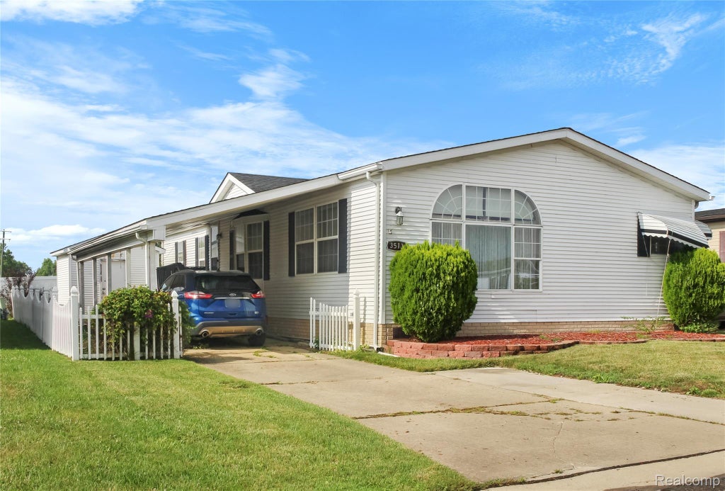 Welcome to your next chapter in The Orchards, a premier 55+ gated community where comfort meets convenience! This sprawling manufactured home is permanently affixed to the land and qualifies for traditional mortgage financing—just like a site-built home. Even better? There’s no lot rent! Instead, you’ll enjoy the benefits of condominium ownership with an affordable association fee that includes full access to all the community amenities. Step inside to a warm and welcoming foyer that flows into a massive formal dining room—perfect for hosting family and friends. Just two steps down, the oversized living room greets you with huge windows that flood the space with natural light and bring the outside in. The open layout leads to a spacious island kitchen with abundant cabinetry, generous counter space, and a large island ideal for meal prep or casual dining. Just off the cozy breakfast nook, a doorwall opens to a charming side deck—your private spot for morning coffee or evening relaxation. Tucked away for privacy, the primary suite is truly impressive, featuring a walk-in closet and a luxurious en suite bath with a soaker tub, dual vanity, and a large walk-in shower. Two additional bedrooms and a full guest bath offer plenty of space for visitors or hobbies. The laundry room includes a convenient half bath, and a carport provides year-round protection for your vehicle. The home includes a large storage shed as well. This spacious, move-in ready home in a vibrant senior community offers exceptional value and a low-maintenance lifestyle. Don’t wait—schedule your private showing today and discover everything The Orchards has to offer!
