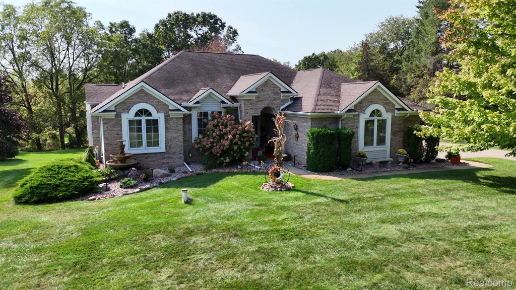 If you want the best, don't miss this unique house. Upgrades installed throughout the house. Gourmet kitchen with stainless steel appliances and large granite island. Kitchen includes lots of counter space with island and lots of cabinets and pantry. Large breakfast room shares expansive kitchen space with great formal dinning room. This ranch home has 4 bedrooms, primary bedroom and 2 large bedrooms on entry level and one large extra bedroom in basement. Also has 3 baths, with granite counters, very large primary bath & main bath on entry level and full bath in basement. The large primary suite includes an oversized bath area with double sinks, walk-in closet, jetted tub and separate shower area. The open great room includes a gas fireplace and a impressive view of the park like backyard. First floor also has a cozy den with library shelving and big window to view the wildlife outside. Not to be overlooked is the massive walkout basement that includes immense recreation area, family room besides the full bath and fourth bedroom and lots of storage area. As we go outside we have a great covered front porch, a spacious covered back patio and you can enjoy outside entertainment with the outside speakers in back of the house and on the driveway side of home as you enjoy your own waterfalls in your backyard. To further enjoy this stunning house it has a big 3 car garage and almost one acre of lush land and scenic views that are hard to find! Don't miss out on this one of a kind large brick ranch! Very motivated sellers!