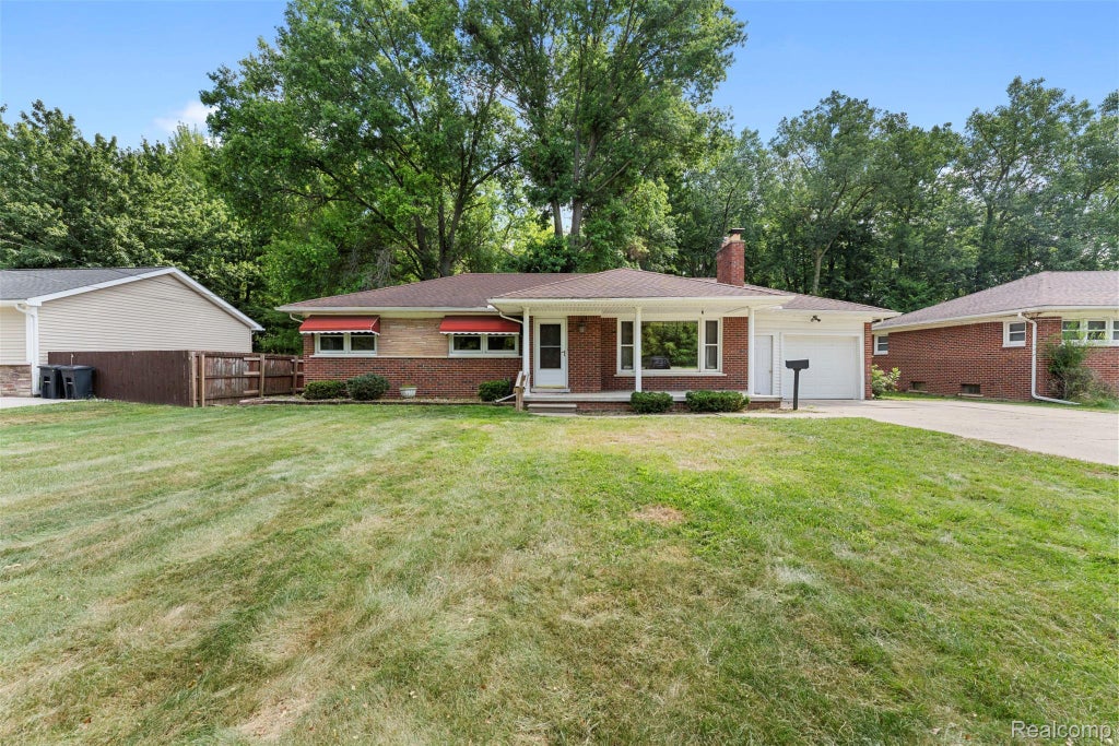 Welcome Home! Lovely 3-bedroom brick ranch nestled on a large lot in the desirable city of Flat Rock. This well-maintained home features a spacious living room filled with natural light, a beautiful kitchen with granite countertops, ample cabinets and counter space, with all the appliances included. The roomy dining area offers a bay window with views of the huge backyard that backs up to the woods (perfect for summer entertaining, gardening, or enjoying nature). All three bedrooms are nicely sized—one even has a hookup for a stackable washer and dryer, offering the option for convenient first-floor laundry. The partially finished basement adds extra living space, an additional room, and plenty of storage. Other highlights include a brand-new front porch (perfect for relaxing this summer), vinyl windows, hardwood floors under the carpet, a 1.5-car attached garage with electric and opener, and a shed for added storage. This home is conveniently located near parks, shopping, restaurants, and I-75. Schedule your showing today to view this fantastic home!