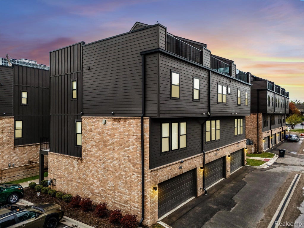 Experience elevated city living at 1049 Hampton Circle, a rare corner townhome in the brand-new Pullman Parc development. It was carefully fitted with premium upgrades by the owner, well beyond the original developer scope. This is a unique floorplan no longer available from the developer with a third room on the top floor. It can be used as a nursery, kids bedroom or office/fitness room. The upper level also hosts two bedrooms, and a conveniently located laundry area. The primary suite is designed as a private retreat, complete with luxe finishes and abundant natural light. One of the home’s most coveted features is its private rooftop terrace—an open-air sanctuary offering sweeping views of the Detroit skyline, perfect for morning coffee or evening gatherings. The flexible first-floor space—ideal for a home office, gym, or guest lounge— complementing the thoughtful floorplan. Upstairs, the open-concept main level impresses with wide-plank flooring, designer lighting, and expansive windows that frame the urban landscape. The gourmet kitchen is outfitted with sleek cabinetry, quartz countertops, top of the line appliances, and an oversized island with bar seating—perfect for entertaining or everyday living. The adjoining dining and living areas are anchored by a dramatic stone fireplace wall. Additional amenities include a two-car attached garage with a 240v outlet ready for EV charging, a smart alarm system, and energy-efficient windows. Tucked along the Dequindre Cut greenway and just moments from Eastern Market and the Detroit Riverwalk, this location offers the perfect balance of urban convenience and outdoor connection. Unit is eligible for 15 years of NEZ taxes. NEZ certificate included in documents. Upgrade lists available in documents. [Exterior pictures have been digitally enhanced]