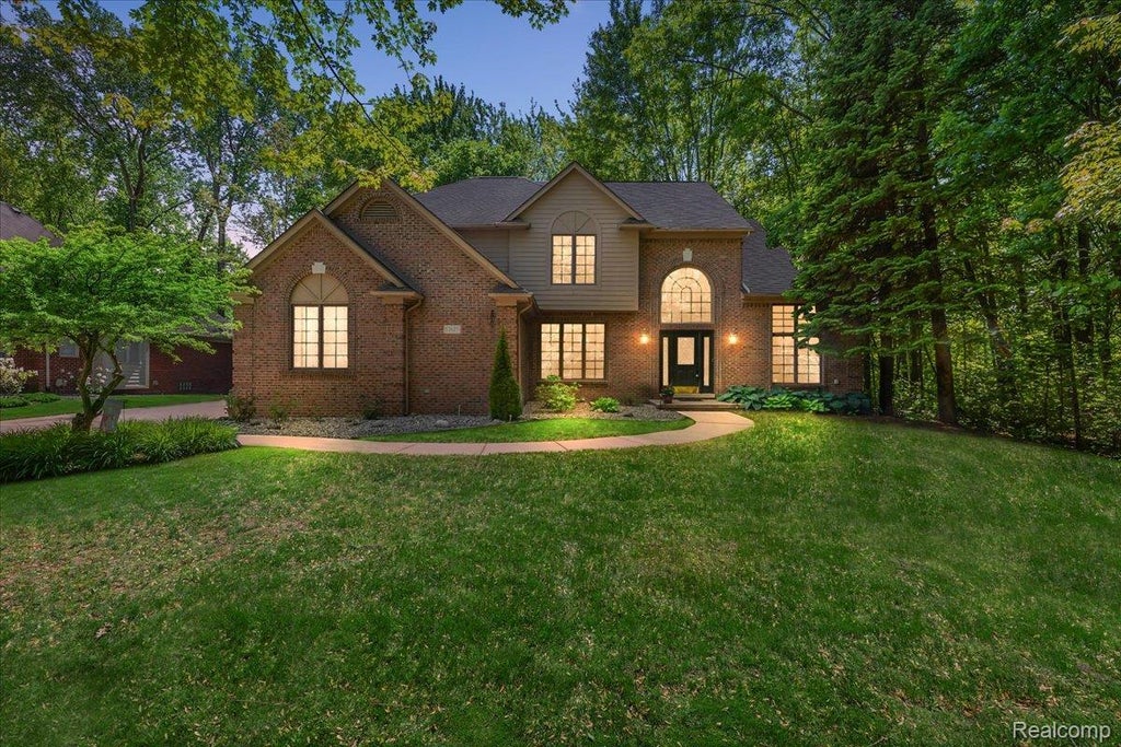 Welcome to this fantastic brick colonial in the desirable Utica School District, perfectly situated on a quiet cul-de-sac and surrounded by mature trees and manicured landscaping. Featuring 4 bedrooms, 2.1 bathrooms, and 3,237 sqft. Step inside to a grand two-story foyer that leads to a breathtaking great room with 18-foot ceilings, floor-to-ceiling windows offering serene wooded views, and a striking brick fireplace with a classic mantle. Hardwood floors flow throughout much of the main level, adding warmth and elegance to the space. The spacious island kitchen is a chef’s dream, featuring granite countertops, a stylish backsplash, ample cabinetry, a double oven, and brand-new gas cooktop, dishwasher, and microwave. The adjoining breakfast nook includes doors to the backyard, while a butler’s pantry provides seamless access to the formal dining room—ideal for entertaining. A second fireplace enhances the cozy living room, and a large first-floor office/library wrapped in windows offers a peaceful workspace with views of the beautifully landscaped yard. The main level also includes a convenient laundry room with new washer and dryer, and a powder room with updated vanity and fresh paint. Upstairs, the expansive primary suite boasts two walk-in closets and a private ensuite bath with a jetted tub and dedicated vanity area. Three additional generously sized bedrooms and a full bath complete the upper level. The finished basement adds valuable living space with a third fireplace, kitchenette, and ample storage—perfect for gatherings, hobbies, or extended stays. Outside, unwind on the brick paver patio surrounded by impressive landscaping, natural stone accents, and a tree-lined backdrop that offers privacy and tranquility. A 2-car attached garage and extended driveway provide plenty of parking and storage.