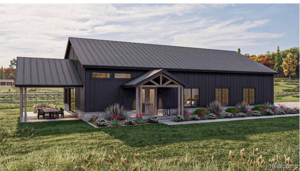 This amazing opportunity in Rochester Hills awaits you! Imagine living in this beautiful Barndominium that perfectly blends first-floor living with a garage large enough for all your hobbies or work needs, nestled on a half-acre lot backing up to a scenic wooded backyard. This home was a custom build for a client but the client is no longer able to complete to home due to personal reasons. The home has many high end finishes and the cost to duplicate it would exceed $850,000. The home was recently appraised for $615,000. Builder must sell! ****BUILDER OCTOBER SPECIAL **** LANDSCAPE PACKAGE INCLUDING SOD, IRRIGATION FOR ANY DEAL SIGNED IN OCTOBER The home features 14-foot-tall ceilings throughout the 1600 sq. ft. of living space, plus an additional 1200 sq. ft. of fully finished, heated, and air-conditioned garage space. The garage boasts two 16’ x 12’ tall, insulated garage doors and a 32’ x 15’ covered rear patio with a stunning cathedral ceiling. That's a combined finished space of 2800 sq. ft. in total! Imagine hosting gatherings on your covered rear patio or enjoying a cozy evening by the beautiful stone fireplace with a timber mantle. The list of a few features includes: - Marvin windows - Dura Suprema cabinetry with quartz countertops - Custom tile work - A unique three-zone water boiler radiant system throughout the house and garage - Separate forced air HVAC system with air conditioning for the home. - Appliance package Can you see yourself enjoying this unique space? Don't miss out on the chance to own this special property in Rochester Hills. Schedule a viewing today to see for yourself! Don't miss out on this fantastic home!