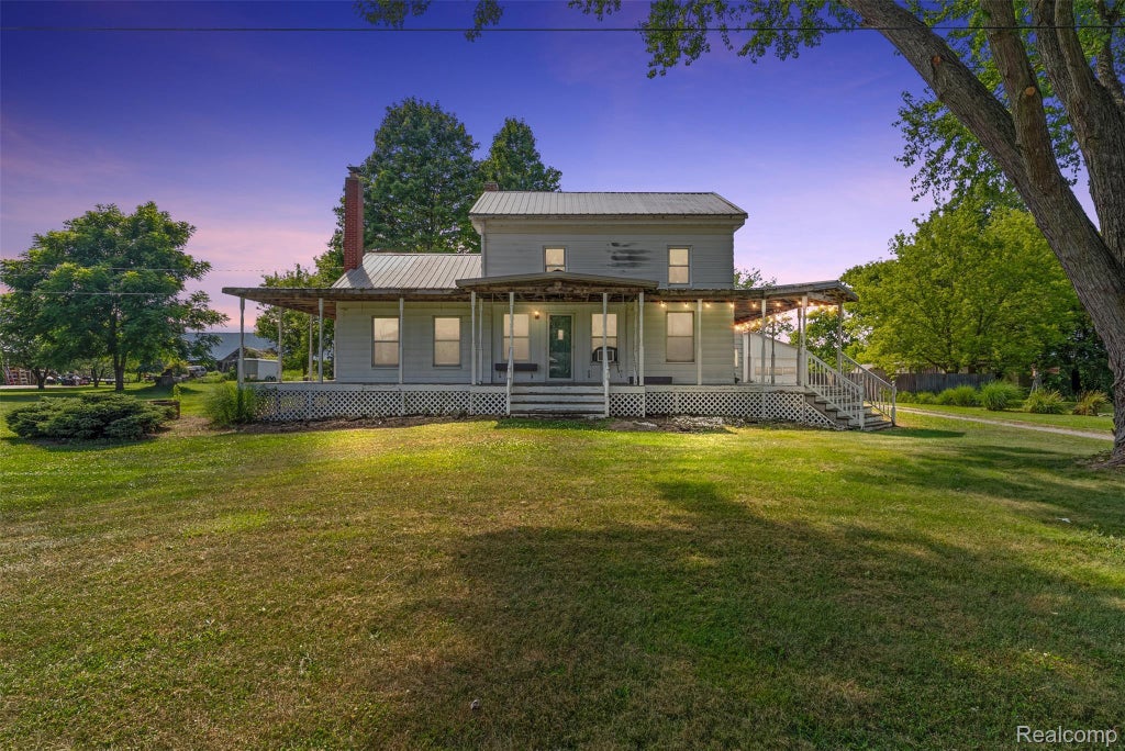 This two-story farmhouse is located in a quiet country setting and features 5 bedrooms, a spacious layout, and lots of potential. The home needs some finishing touches, making it a great opportunity to add your personal style. Enjoy the large yard, perfect for outdoor activities, and relax on the classic wrap-around porch. A two-car detached garage offers plenty of space for parking or storage. If you're looking for a peaceful setting with room to grow, this farmhouse is worth a look!