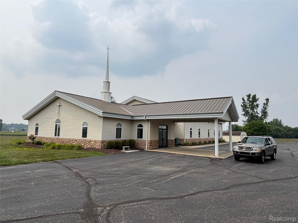 Currently church and tax exempt, seats 165/185, central air, 1 level/slab, 6 classrooms/offices, kitchen and dining area, built in 2008, metal roof, 80 car paved parking, storage shed all on 12,37 acres.