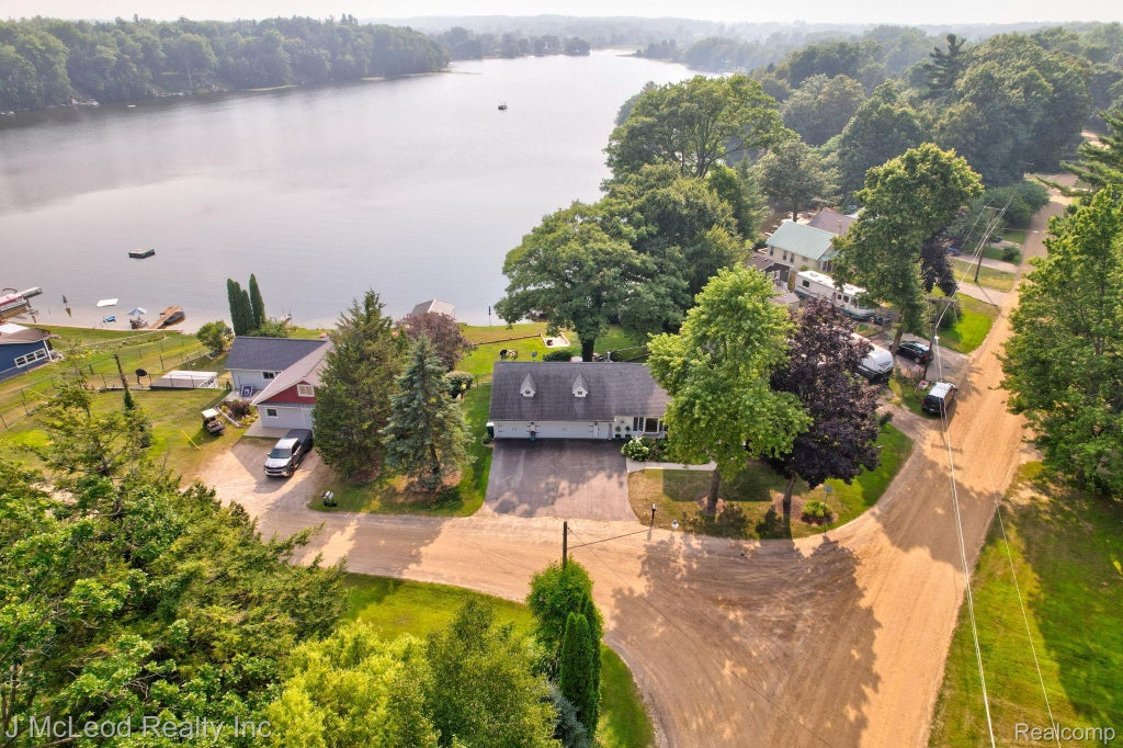 Lakefront living at its best on private, all-sports Hemingway Lake! This beautiful 3-bedroom, 2-bath home sits on a prime corner lot with 80 feet of water frontage and one of the best panoramic views on the lake. The gently tiered lawn cascades from the home down to the water's edge, with a sandy, shallow area just beyond—perfect for placing a lawn chair and wading in on warm summer days. A dock is included, offering easy access to the lake and all your water activities. Inside, the spacious layout includes a large family room addition with stunning lake views, a cozy living room, and a dining area. The updated kitchen features modern appliances, rollout shelves, a lazy Susan, and newer countertops. Upstairs, you’ll find three comfortable bedrooms and a full bath with a charming clawfoot tub. The home also includes an unfinished basement—ideal for additional storage. Additional features include updated interior and exterior lighting, a gutter guard system, a whole house Generac generator, and pristine landscaping full of vibrant flowers and plants. The massive 3-car attached garage faces the road and offers convenient exterior access on the lake side—perfect for storing all your lake gear and toys. Whether you're looking for a full-time residence or the perfect vacation cottage, this home offers a peaceful retreat just 6 miles from M-24, making for an easy commute to surrounding towns and cities. Enjoy everything this special community has to offer—the Hemingway Lake Association hosts a variety of summer events that bring neighbors together, from pontoon parades to community gatherings. The lake is calm and scenic, mostly enjoyed by pontooners with the occasional jet ski. Located within the highly regarded Lakeville School District, this is lake life done right.
