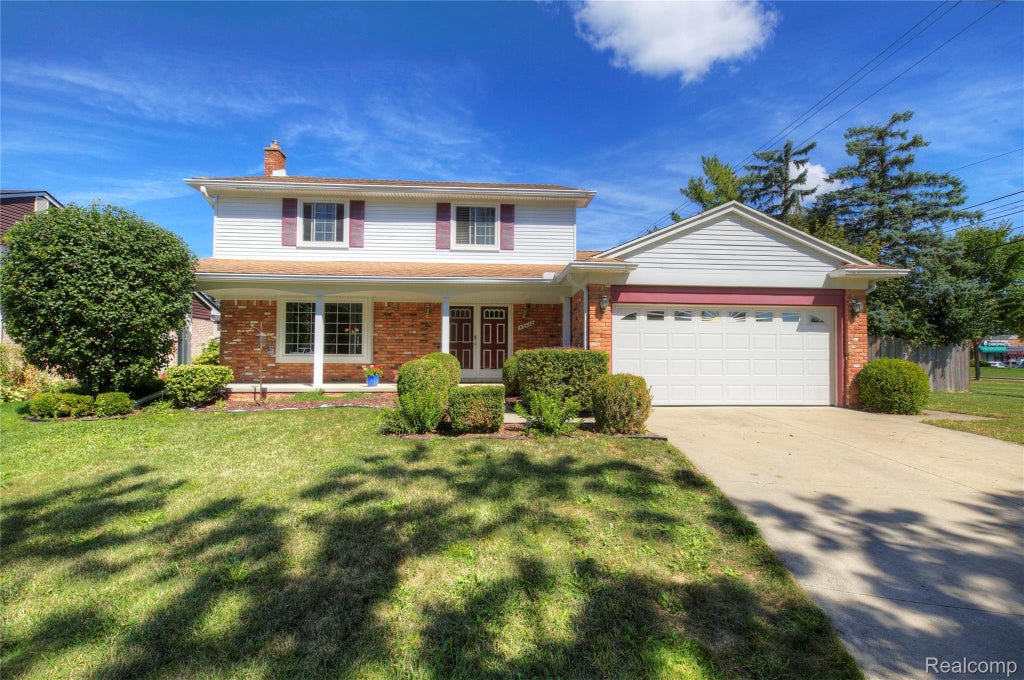 Welcome to this beautifully updated 3-bedroom, 2.1-bath colonial nestled on a cul-de-sac in the highly sought-after Sunflower Subdivision. Set on a spacious lot, this home offers an inviting covered front porch, newer roof, and an in-ground pool with wood privacy fence—perfect for outdoor living and entertaining. Inside, you’ll find new luxury vinyl plank flooring and carpet, fresh paint, new light fixtures, and new doors throughout. The kitchen features stainless steel appliances and soft-close cabinetry, opening to the family room with a natural fireplace and door wall to the patio. Additional highlights include a fully updated half bath, convenient first-floor laundry, a private primary suite, and a partially finished basement. A two-car attached garage completes this move-in-ready home.The Sunflower community is second to none, offering pools, parks, walking trails, clubhouse, tennis courts, and more—providing a vibrant and active lifestyle right outside your door.