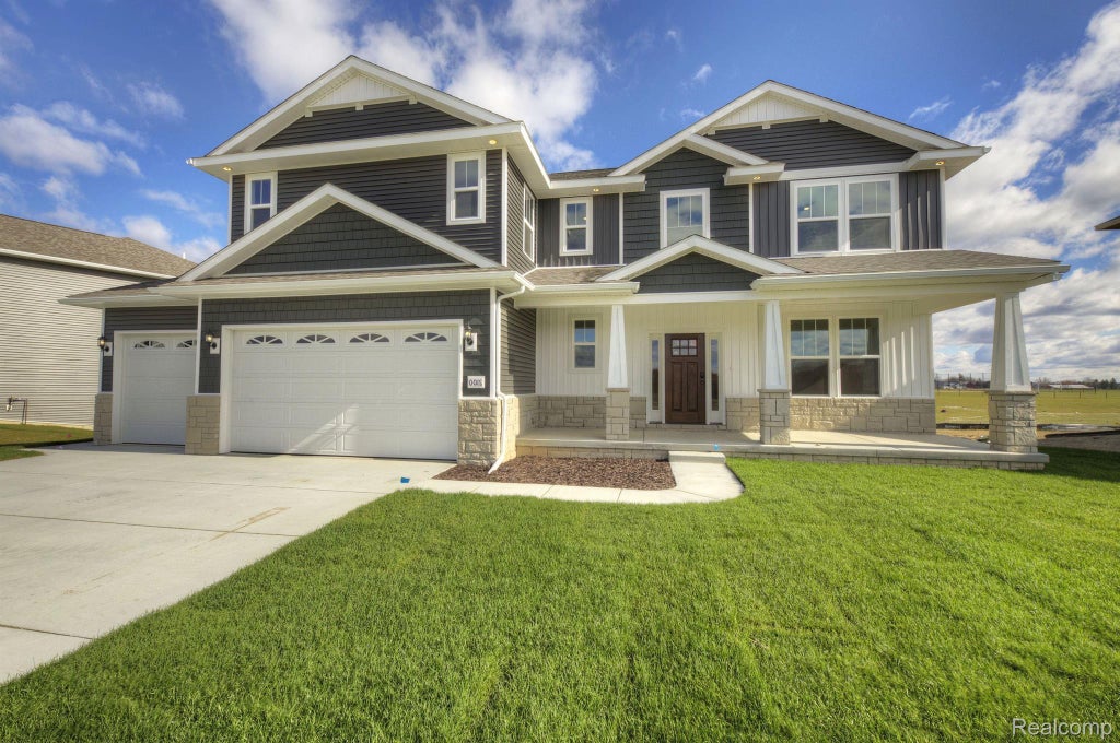 NEW PHASE OPEN! Built by Capital Custom Homes the Augusta features over 3200 sqft with 4 bedrooms and 3.5 bathrooms. PRIMARY SUITE AND JR SUITE. Open-concept living and dining .This plan offers a first floor office, laminate hardwood flooring throughout main living spaces and carpet with 8lb pad in all bedrooms. Exquisite primary suite with dual comfort height vanity sinks, tiled walk-in shower, free standing tub and custom master closet. Great room beautifully stoned fireplace and window seat. Beautiful kitchen with 42" upper cabinets with crown molding and soft close cabinet doors and drawers. Tiled backsplash, 8' center island and quartz countertops. Built in stainless steel Whirlpool appliance package included. This home is a walkout and prepped for future finish. Comes with 16x12 Trex Deck. Superior Basement Walls with 5-year structural warranty and 9' first floor ceilings. Truck ready 3-car Garage and full covered porch. 1-year builder warranty, sod/irrigation included. Gutters/Downspouts, Garage door opener, keyless entry, wireless access point. Community with sidewalks, streetlights, fishing pond, baseball field, soccer field, playground and coming soon clubhouse and swimming pool. Great commuting location off I96/D19 exit and just minutes away from downtown Howell and Brighton. Buy now and move next year. Completion set for March/Arpil 2026. Low deposits and no construction loan needed.