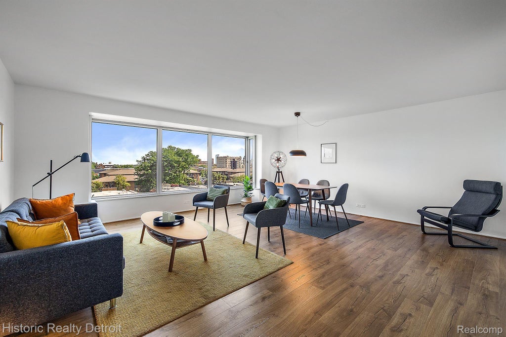 Motivated Seller, Huge Price Drop!!! 1300 E. Lafayette #202 – One-Bedroom Co-op with South-Facing Views. Rare opportunity at an exceptional value in one of Detroit’s most iconic addresses. This beautifully renovated 1-bedroom, 1-bath co-op is located on the lower level with desirable south-facing views, filling the home with natural light and treetop vistas. Wide-plank hardwood floors flow throughout the open living and dining areas, where oversized windows frame lush greenery and a sleek pendant light accents the dining space. The updated galley kitchen features natural wood cabinetry, granite countertops, a stylish tile backsplash, and stainless-steel appliances including a French door refrigerator. The spacious bedroom continues the hardwood floors and bright ambiance, while the updated bath offers a granite-topped vanity, contemporary fixtures, and fresh, neutral finishes. Enjoy an unmatched lifestyle with amenities that include two heated outdoor pools, two tennis courts, a fully equipped fitness center, yoga room, elegant banquet halls, secure indoor parking, bicycle storage, and 24-hour door service and security. All within walking distance of Downtown Detroit, the Riverwalk, Eastern Market, Belle Isle, bike lanes and trails, cultural landmarks, Little Caesars Arena, Ford Field, and Comerica Park. Convenient access to major freeways and a short drive to Detroit Metro Airport. Co-op financing is available through National Cooperative Bank. Buyers will appreciate the peace of mind that comes with a consistent monthly payment including real estate taxes, heat, water, and air conditioning—plus, approximately one-third of the monthly payment is eligible for a tax write-off.