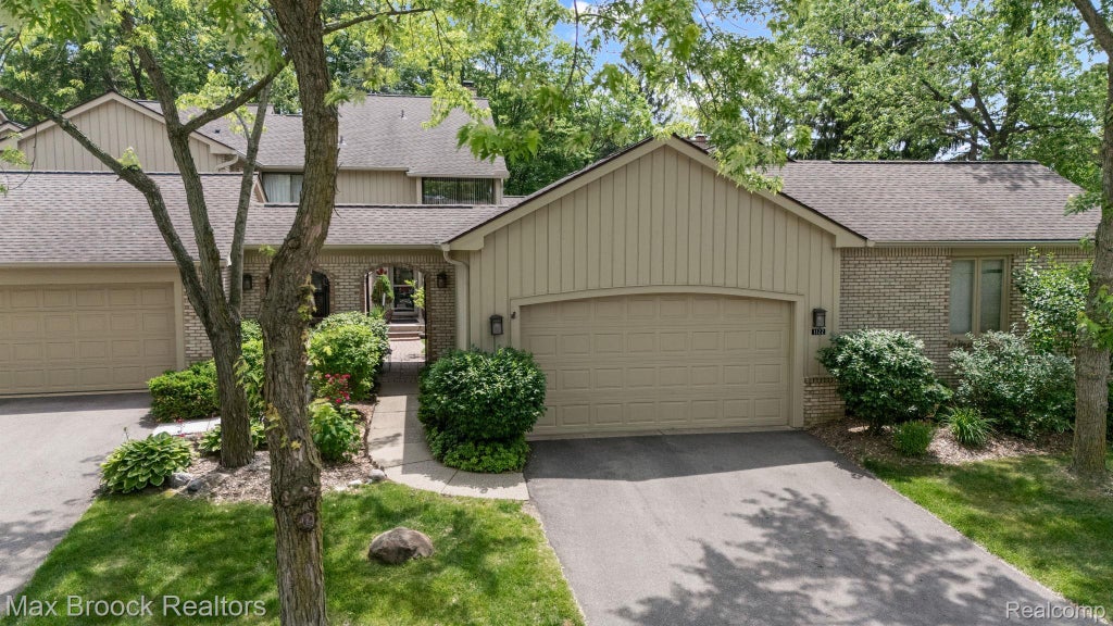 Two bedroom townhouse-style condo in sought-after Highlands of Adams Woods. Wooded lot with private views front and back. Beautifully landscaped gated courtyard is terraced with huge privacy wall. Kitchen with oak cabinets, stone backsplash and eating bar, newer gas cooktop and dishwasher in 2025. Two way gas fireplace between living and formal dining room.. Easy access to primary suite using chairlift. Primary suite features cathedral ceiling and updated bath with oversized shower. Second bedroom with ensuite, and balcony overlooking terraced courtyard. Finished basement adds living and storage space. Newer gas gorced air furnace and central air fall 2024. Enjoy use of clubhouse with pool, tennis, pickleball, and nature trails. Association fee includes water in and out, snow removal to the front door, exterior maintenance and building insurance.. Bloomfield school district.