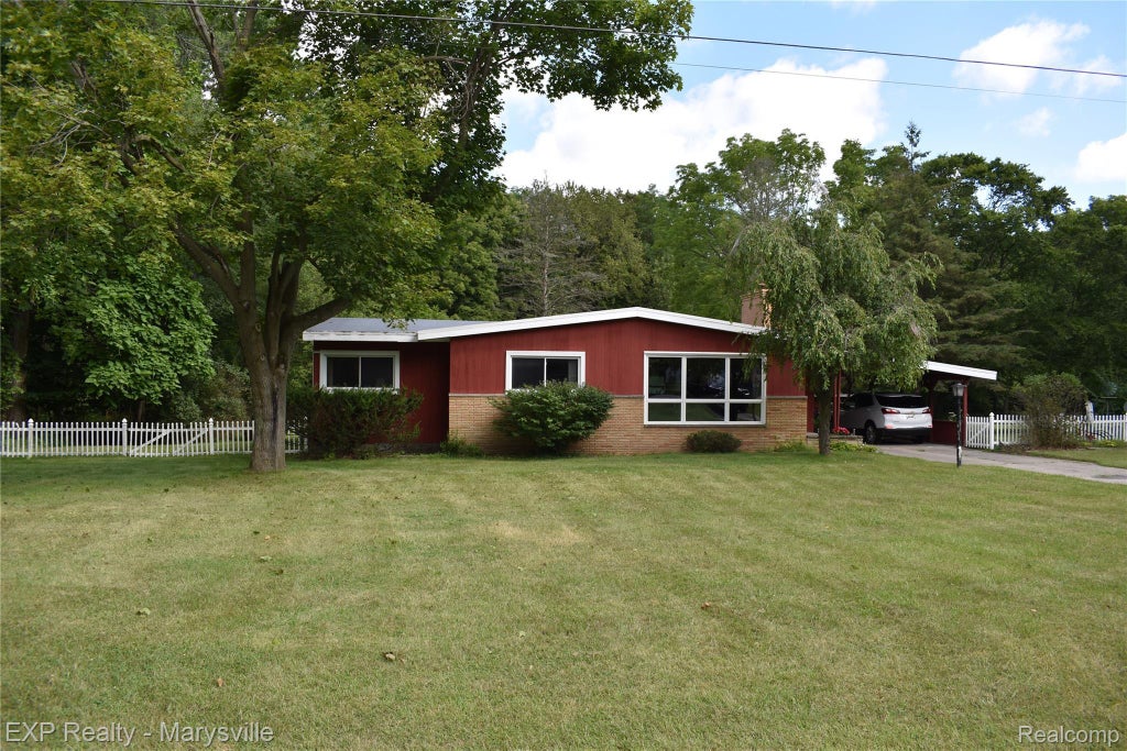Charming countryside home located in Wales Township, Goodells—peaceful rural ambiance, great neighborhood. Peaceful paved road. Conveniently close to I-94, I-69, Port Huron and Marysville. Close to county park for entertainment and recreation. Three nice size bedrooms and a large full bath. Open concept between living room and kitchen, Easy to entertain company. Low maintenance, well maintained hard floors in the living room and bedrooms. Tile in the kitchen and bathrooms. Additional large 3 season room off the back with large windows. Home has been well maintained with the roof being replaced two years ago. Nice yard with room to grow. Several nice trees for shade. Refrigerator, stove, washer and dryer included. Many other furnishings in the house are negotiable.