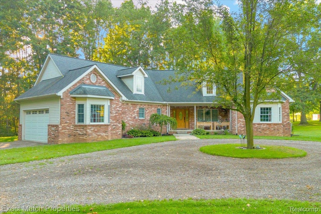 Looking for a private, secluded retreat without the hassle of HOAs or noisy neighbors? This is the home for you. Arrive by way of a 400' wooded driveway that feels like you’re up north, complete with a turnaround for guests or easy access to the garage. The beautiful oak front door with sidelights, along with Andersen windows and doorwalls, set a tone of timeless quality. The foyer opens to a spacious living room and a dining area that’s perfect for entertaining. The kitchen is a dream—expansive counters, matching cabinetry, and plenty of space for the chef in the family. The primary suite is a true luxury retreat, measuring 20' x 20', with two generous closets, one being a reinforced locking closet for added security. The adjoining bath features a separate tub and shower, enhanced by a skylight and wooded views through a frosted lower window for privacy. Two additional bedrooms are generously sized and feature room-darkening blinds for comfort. The main-floor laundry includes a utility sink. The basement was designed with 12' ceilings, glass block windows, and two enclosed storage rooms (one with wood shelving). There’s also a second dining area, abundant kitchen cabinetry, and a cozy wood-burning stove. Practical upgrades include: 86-gallon pressure tank (2020) Water softener with dual filters & reverse osmosis system Water heater (2019) Furnace (2011) with central air (recently tuned up) Insulated, drywalled garage with gas heater New shed Gutter Guards, Downspouts into a dry well. Room Darkening Shades Step outside to enjoy professional landscaping, a covered concrete porch with wooded views, and plenty of space for a pole barn. A chicken coop with fencing is already in place. The yard is perfect for bonfires, volleyball, and outdoor gatherings. This home blends comfort, privacy, and functionality—ready for you to make it your own.
