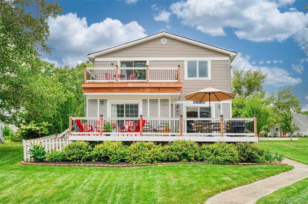 Welcome to lake living on 680-acre, all-sports Whitmore Lake! This beautifully updated home offers shared lake access with a boat dock just steps away and stunning lake views from multiple rooms. Situated on an oversized lot with extra side yard, the property provides plenty of outdoor space without the restrictions of an HOA—just $300/year for shared lake access. Inside, you’ll find a massive great room with vaulted ceilings and a striking stone gas fireplace, perfect for entertaining. The home offers flexibility with the option of two primary suites—one on the main level and another upstairs. The second-floor suite features a doorwall to a private balcony, where you can unwind and take in serene lake views. The main living area also extends outdoors to a large deck overlooking the water, ideal for gatherings and summer nights. Additional highlights include a rare oversized 3-car garage, a bright and airy layout with abundant natural light, and a huge yard with plenty of room to enjoy. Recent updates bring peace of mind, including: furnace (2021), hot water heater (2023), whole-house filtration system (2023), well head (2022), attic fan (2022), exterior paint (2024), luxury vinyl plank flooring on the main level (2024), and master deck (2022). Freshly painted and move-in ready, this home combines comfort, convenience, and true lake lifestyle.