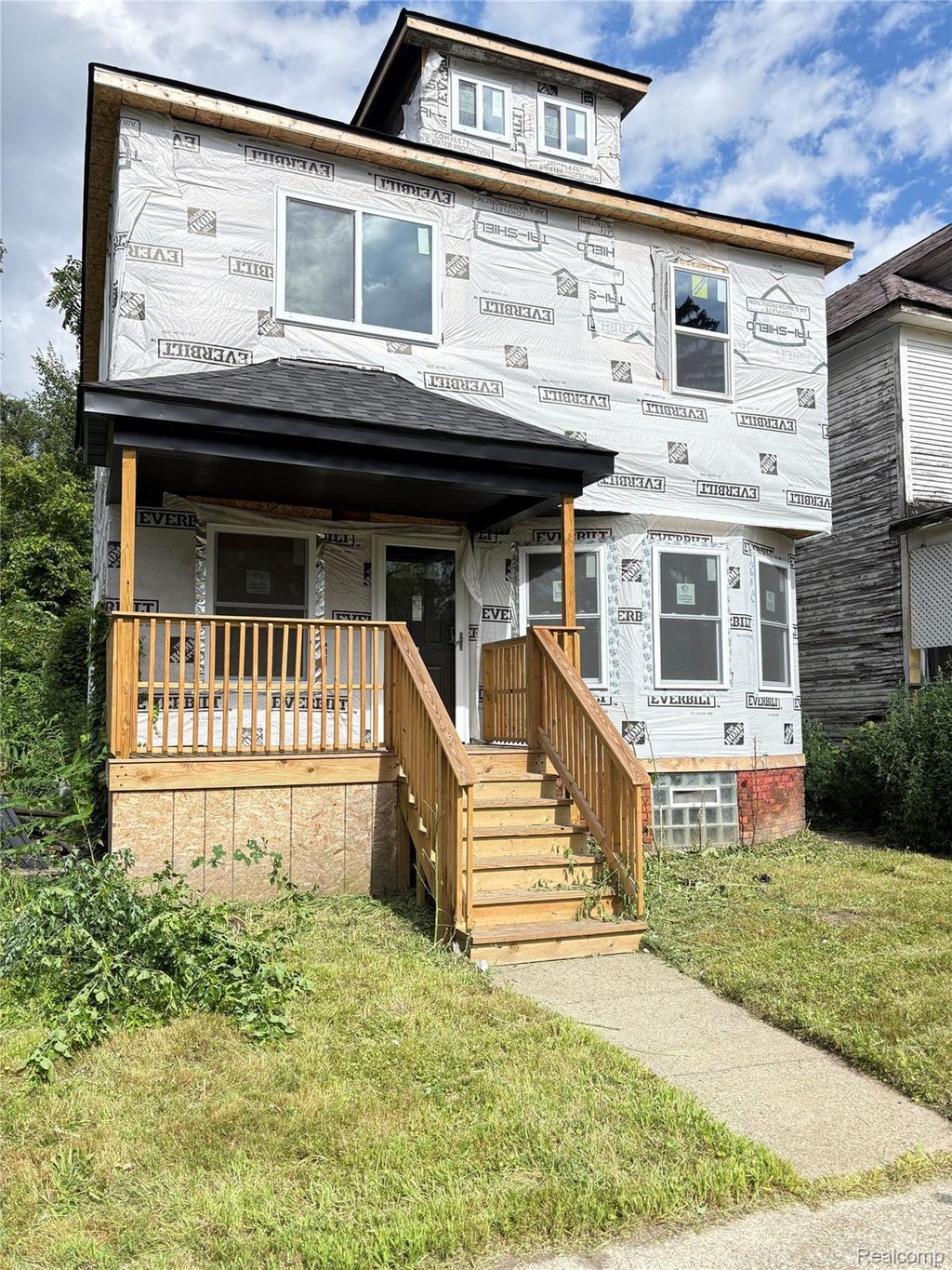 Fully Gutted – All Major Updates Done – Finish to Your Taste. Strong bones with brand new studs and full gut—ready for your finishes. Major updates include a brand new roof (2025), all new windows, new wood replacement, brand new front screen, interior & exterior doors, plus brand new front and back porches. Kitchen opens to a spacious backyard through a beautiful sliding glass door and brand new patio. Materials included in sale: wood( inside home). Unique option to purchase adjacent lot from the Detroit Land Bank—verify availability and terms. Buyer/agent to verify all information.