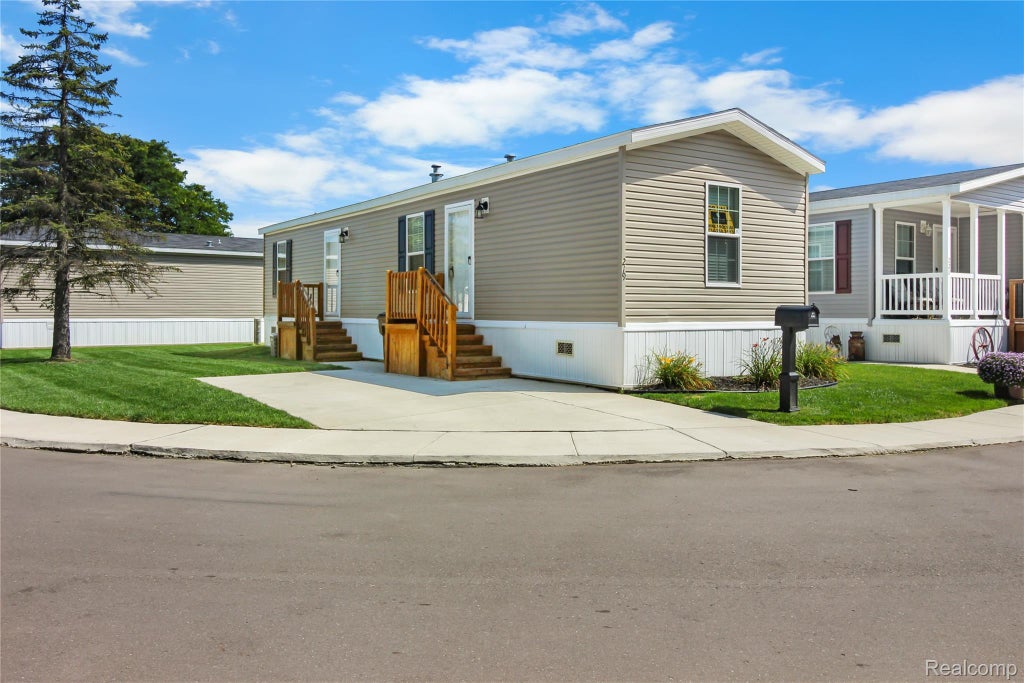 This charming tiny house is located in a beautiful and very clean senior community. Only a couple of years old, this like-new home is ideal for someone looking for an energy-efficient space that is easy to maintain. The open concept living room and kitchen provide a bright, inviting atmosphere filled with natural light. The kitchen features stainless steel appliances and rich mocha cabinets that add a modern touch. The primary bedroom sits at the rear of the home with the bathroom and laundry room conveniently next to the bedroom. The second bedroom makes an excellent office or craft room, offering flexibility to suit your needs. Set on a corner lot, this home includes a driveway for easy access—an advantage since many home sites in the community offer only street parking. Enjoy the many amenities offered by the Royal Holiday community, including a clubhouse, pool, and organized activities. Lawn care is also available for an additional fee. The location is unbeatable, just minutes from IKEA, Sam's Club, Meijer, Lowe's, and Westland Mall. Please note this is a senior community where the primary resident must be at least 55 years old, with additional occupants at least 40. Don’t miss this opportunity to enjoy low-maintenance living in a welcoming community. Call today to schedule your showing!