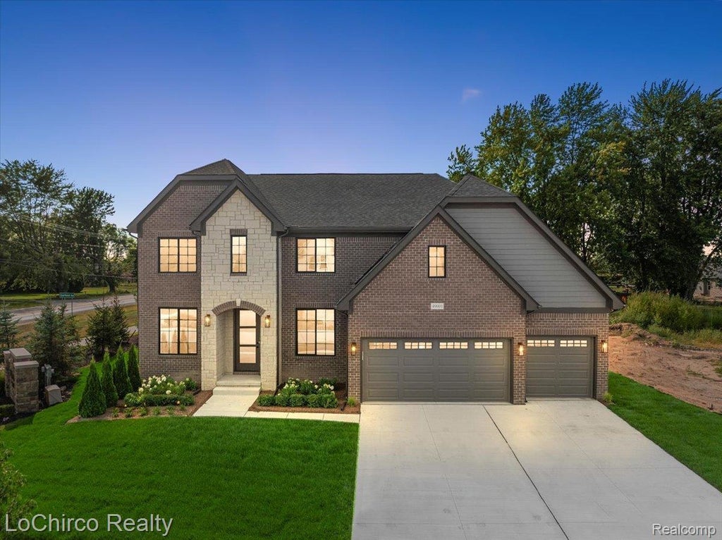 Welcome to “The Astoria,” our newest model home for Phase 4 of Monarch Estates, located at Lot 194 – 49001 Wingfield Drive in Macomb Township. This stunning 4-bedroom, 3.5-bath colonial blends luxury, comfort, and style with a spacious open floor plan. The great room is a true showstopper with soaring ceilings and a dramatic floor-to-ceiling fireplace, making it the perfect space for both relaxation and entertaining. The chef-inspired kitchen features sleek quartz countertops, a full-wall quartz backsplash, premium cabinetry, and a dedicated cooking area designed for both function and elegance. The primary suite offers a spa-like retreat with a luxurious bathroom, Euro-style glass shower doors, and refined ceiling details. Throughout the home, you’ll find premium finishes including hardwood-style LVT flooring, granite or quartz countertops, and custom woodwork. Thoughtful upgrades such as energy-efficient Pella windows, 9-foot basement walls, custom garage doors, an 8-foot-wide door wall in the nook, and stylish iron railings elevate the design. A covered lanai extends the living space outdoors, creating the perfect setting for year-round enjoyment. Built with care and attention to detail, this LoChirco Homes property exemplifies quality craftsmanship. Phase 4 of Monarch Estates is now open with 12 premium lots to choose from. This model will be move-in ready within 60 days. Come build with us and make “The Astoria” your forever home.