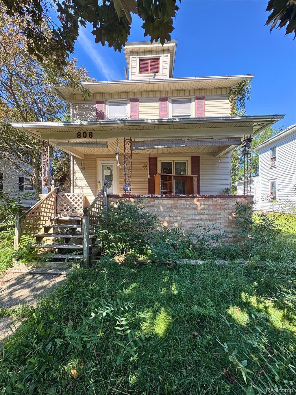 Looking for your next project? Opportunity is waiting for you on Division Street! Located less than half a mile from Baker College and close to M52, this home needs Heavy TLC but holds fantastic potential and multiple redeeming qualities, not to mention the favorable layout. Lined by well maintained and updated historic homes and retaining meaningful touches of its original character, it features hardwood floors with beautiful patterns, charming wood baseboard and wooden framing of entryways. The dining room has French Doors that lead into the Family Room (which could be converted into a 1st floor primary with ensuite half bathroom,) and a Stained Glass window is a pleasant surprise flanking the staircase. The welcoming covered front porch holds the potential for a cozy space to relax and the two car detached garage is waiting for revival. Offering a front and side entrance, there are multiple ways to restore this home, either as a vibrant income property or back to its original glory with your own personal touches. Forced air with the ability for central air to be installed. Imagine a Craftsman style front door, repainted siding with contrasting trim around windows, a revived front porch and landscaping- paired with a kitchen large enough to accommodate a show stopping Island, refinished hardwoods and recessed lighting throughout with impressive fixtures. This house is a beautiful canvas. Bring your hammer and your vision to unlock this home's true potential! Sold as is, where is, with any remaining contents to be included in the sale. *Please be careful on stairs leading to front porch*