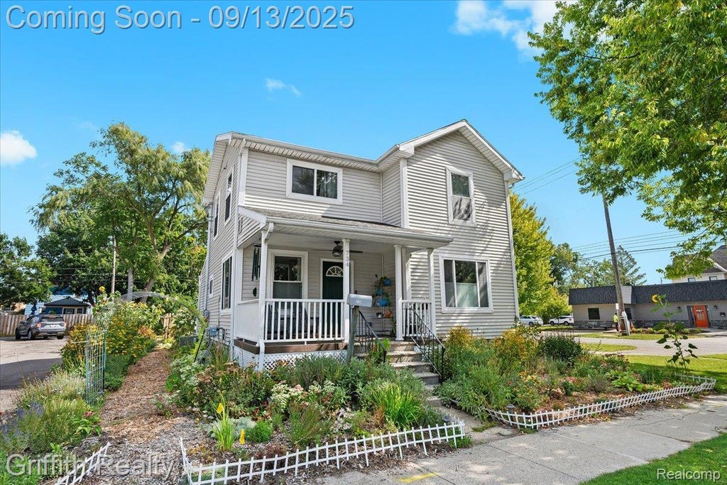 Charming and updated, this home offers the perfect blend of character, warmth, and convenience-all within walking distance of vibrant downtown Howell. Enjoy viewing parades from your front porch or inside your home! Farmers Market, summer music at the Courthouse, dining, shopping, and beautiful parks just steps from your front door. Inside, you will be pleased with the openness of the entry level, large kitchen with stainless steel appliances, and a huge walk-in pantry. Open dining to family room with built-ins and real hardwood flooring including solid oak doors and trim of top quality. Wide staircase leads to the upper level, featuring 3 bedrooms and a full bathroom. Laundry is conveniently located near the bedrooms. Newer windows ,A/C and more. Sellers have enjoyed the backyard immensely, and you can too. Lots of room for gardening, outdoor activities, and plenty of room to play. Enjoy the yard coming into bloom every year with flowers and vegetables. Single car garage. This property is also zoned “local Business”-City of Howell. Excludes chest freezer in basement.