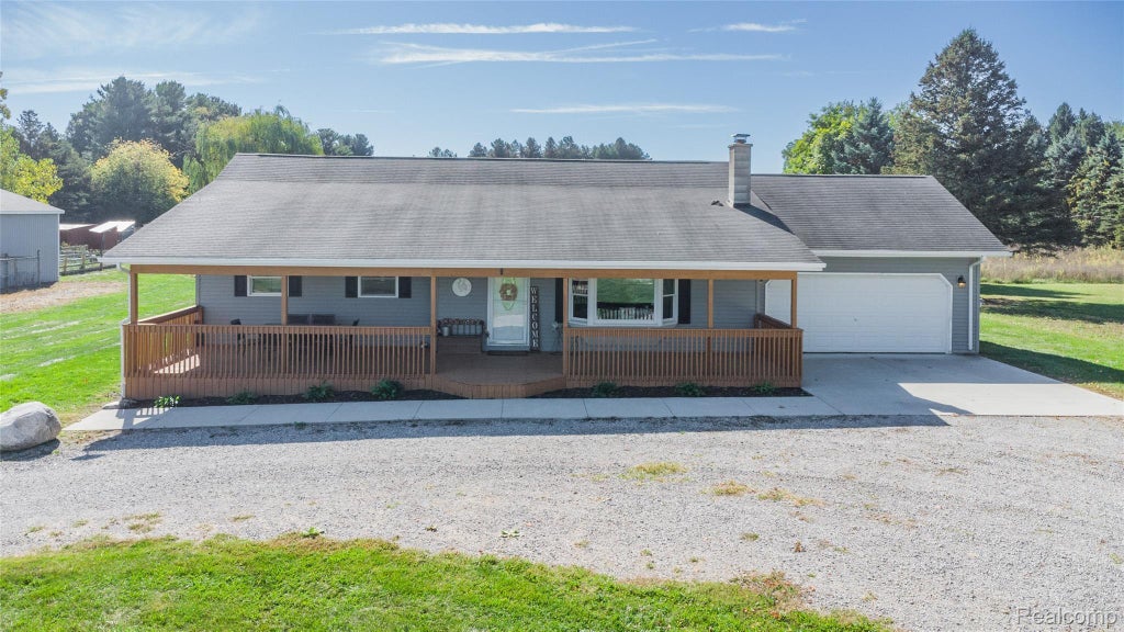 This charming 3bed, 2 bath home offers 1,166 square feet of functional space designed with an inviting open floor plan and an updated kitchen. Spread across a generously sized 4-acre lot perfect for outdoor enthusiasts or hobby farmers, the property includes a 40x60 pole barn (electric, insulated). Barn with three stalls, a hay loft, and water and separate chicken coop! Rounding out the back yard is a large stocked pond!