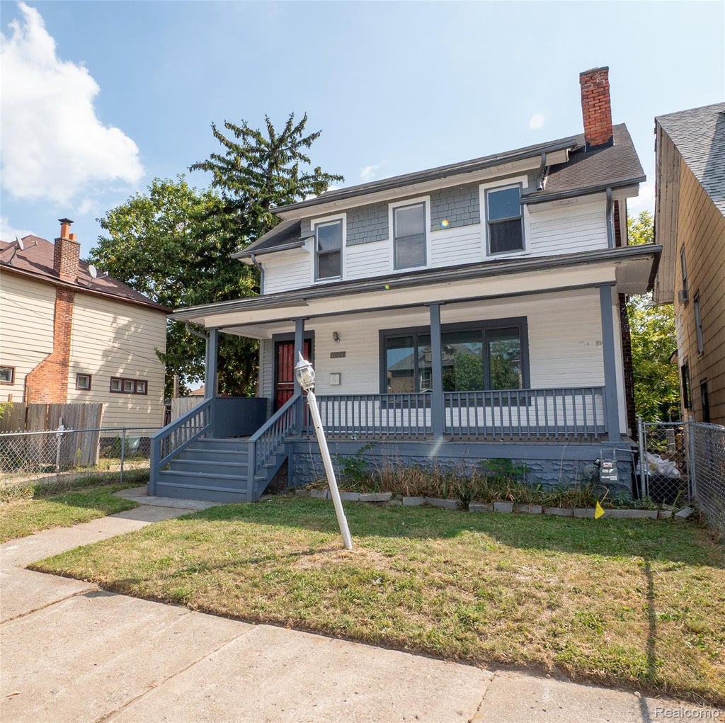 Welcome to this well-maintained Colonial nestled near the sought-after Russell Woods district. Situated in a vibrant and up-and-coming area, this home offers convenient access to shopping and is just minutes from the freeway, making commuting a breeze. Step inside to a spacious living room filled with natural light from a large picture window and anchored by a cozy fireplace. The open-concept layout seamlessly connects the dining room and living room, perfect for gatherings and everyday living. A sunny Florida room off the back of the house provides an additional space to relax or entertain. The kitchen offers plenty of room to add your personal touch. Upstairs, you’ll find three generously sized bedrooms, including a primary suite with a huge walk-in closet, along with a shared full bath. Beautiful hardwood floors run throughout the home, adding warmth and character. The unfinished daylight basement is clean and dry, offering laundry space and potential for future use. Recent updates include an HVAC system, water heater, plumbing, and electrical panel, along with a solid roof and windows. Enjoy outdoor living with a large covered front porch, a fenced backyard, and additional parking off the back alley. With just your appliances, this move-in-ready home is waiting for its next owner to make it their own!