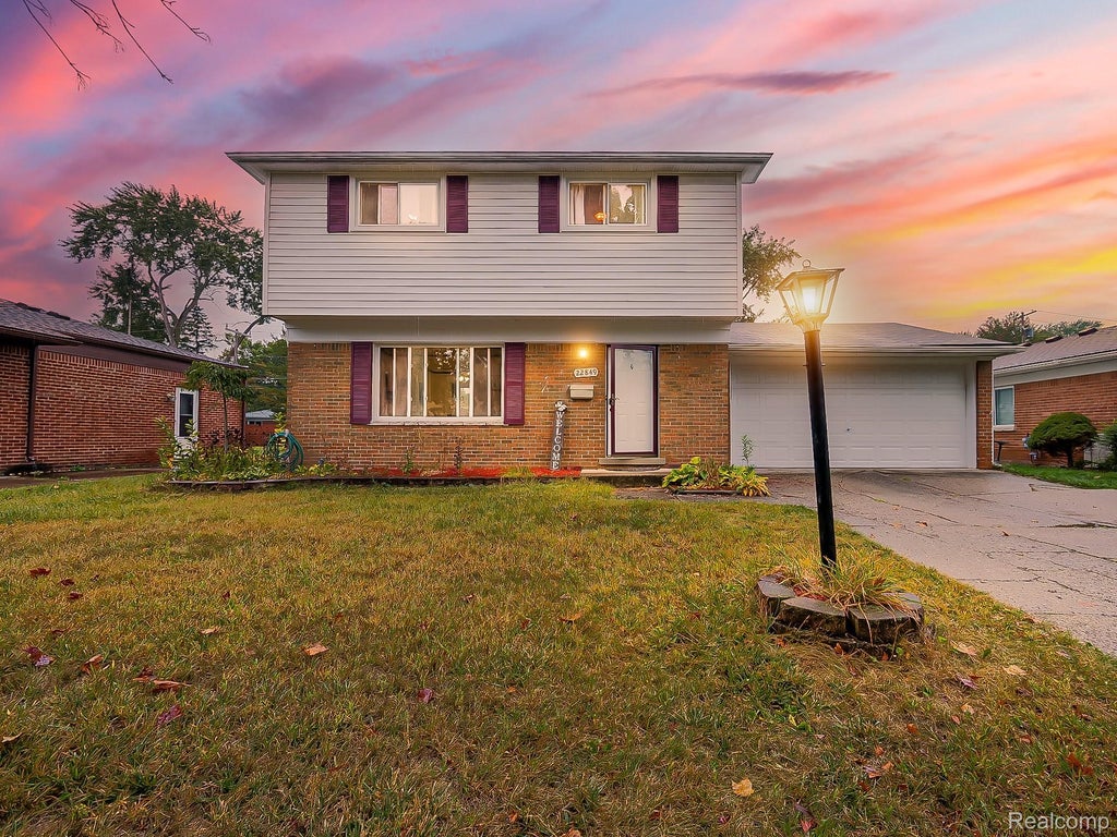 Beautiful 4-bedroom home featuring hardwood flooring and a spacious living room with a large picture window. The dining area offers ample space for gatherings and flows into an open kitchen with stainless steel appliances that remain with the home. Upstairs, the generous primary suite easily accommodates a king bed, alongside three additional bedrooms and an updated full bath. The finished basement provides laundry and plenty of storage. Outdoor living is a highlight with a large brick paver patio for hosting, a built-in fire pit, and apple trees in the fenced backyard. Additional updates include a new hot water heater (2023). An attached 2-car garage adds convenience. Ideally located close to freeways, with schools and downtown Farmington within walking distance, this home combines comfort, function, and a great location.