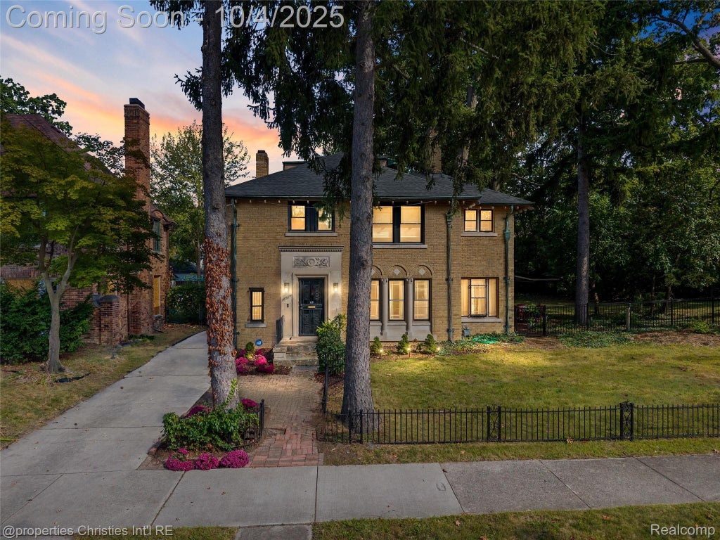 An extraordinary opportunity awaits with this rare TRIPLE LOT in Detroit’s University District. This stately Detroit style Colonial combines historic character with thoughtful modern updates. The formal foyer greets you with its sweeping bowed staircase, hardwood floors, and original leaded doors, setting the stage for the elegance that flows throughout the home. The light-filled living room, framed by picture windows and intricate moldings, surrounds a central fireplace and invites gatherings both large and small. At the heart of the home, the chef’s kitchen boasts granite counters, stainless steel appliances, and ample room for cooking and entertaining. Just beyond, the wood-paneled den with a second fireplace and the sunlit atrium featuring a restored Pewabic tile fountain create distinct spaces for work, relaxation, or quiet retreat—all with views of the expansive fenced backyard and patio. Upstairs, spacious bedrooms and renovated baths provide comfort and flexibility, while the primary suite impresses with a walk-in closet and spa-inspired bath featuring dual vanities, a soaking tub, and jetted shower. The third floor offers a private en suite and attic storage, while the lower level extends the living space with another fireplace and large gathering area. Meticulously cared for and restored, this home is the perfect blend of original charm and modern convenience—an exceptionally rare find in the University District.