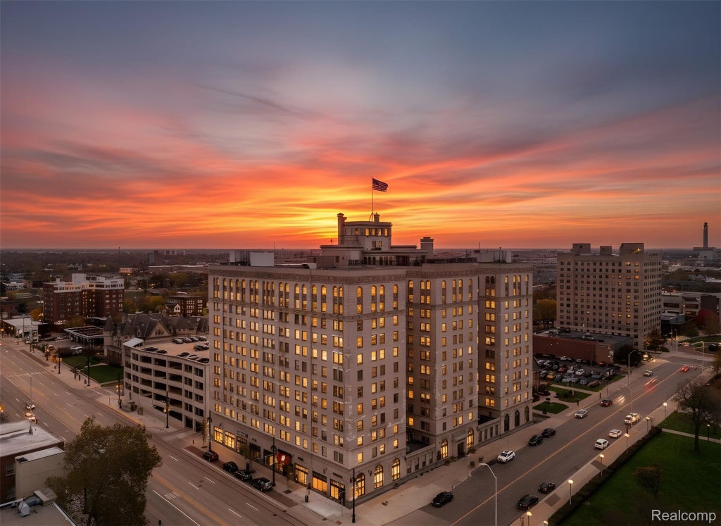 The Park Shelton – excellent Midtown location right on the Q-Line, across from the Detroit Institute of Arts and the Detroit Public Library, perfectly situated between WSU and CCS campuses. This two-bedroom, two-bathroom condo includes two parking spaces and is full of charming historic details throughout. The 2nd-floor location provides picturesque views of treetops and historic homes, the feel of a European village. Due to the location in an historic district, the view will forever be preserved. Beautiful wood floors and molded plaster details add to the character. Of the two baths, one is ensuite, and each with a tub/shower combination and plenty of storage. The kitchen is open to the great room and includes all appliances. The primary bedroom has a massive walk-in closet, the size of a small bedroom, fully outfitted with clothing storage system. There are hookups for in-unit laundry, and there is also a full-service laundry room available in the basement for added convenience. The building offers fantastic amenities, including a rooftop deck, fitness room with a sauna, and multiple shops, restaurants, and a coffee shop right in the building, all accessible without stepping outside. Best of all, all utilities are included—heat, water, electric, and internet. This is your chance to own a stunning, historic condo, in one of Detroit's most desirable locations. One parking space (owned) is not covered, the other space is rented for $75 per month, and on the first floor. There are 3 total parcels W23I002005S0429 (NEZ parcel), W01I004235S276 (land parcel), W01I004236S278 (parking space); NEZ-Rehab tax abatement through 2028.