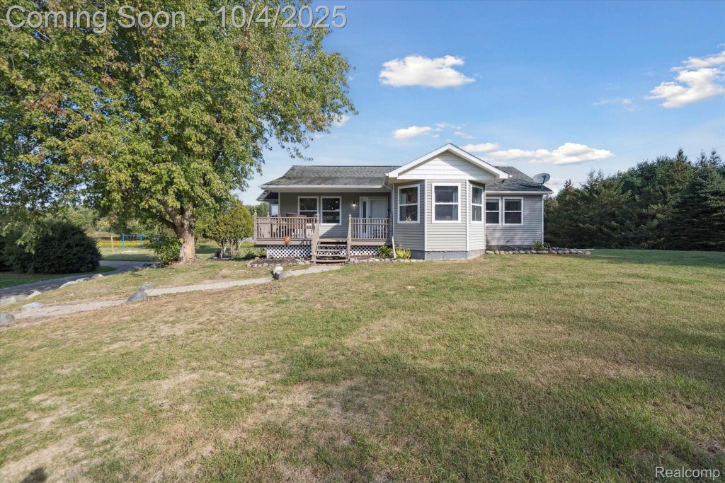 Awesome ranch home sitting on a beautiful 2-acre property with natural gas! This open floor plan has remodeled kitchen with quartz countertops and new luxury vinyl flooring throughout with 5-inch base moldings. Many other updates include new light fixtures, interior paint, updated primary bathroom (2021), water softener system (2021), sewage ejection pump (2022), A/C (2023), well pump (2018) and new concrete patio (2023). The attached 2.5 car garage has a service door to the outside. Walkout basement has full bathroom and is just waiting for your finishing touches. Beautiful yard is partially fenced and has circular driveway. Enjoy country seclusion with room for all of your outdoor toys! Close to I-96 for easy commute. Don’t miss out on this great home!