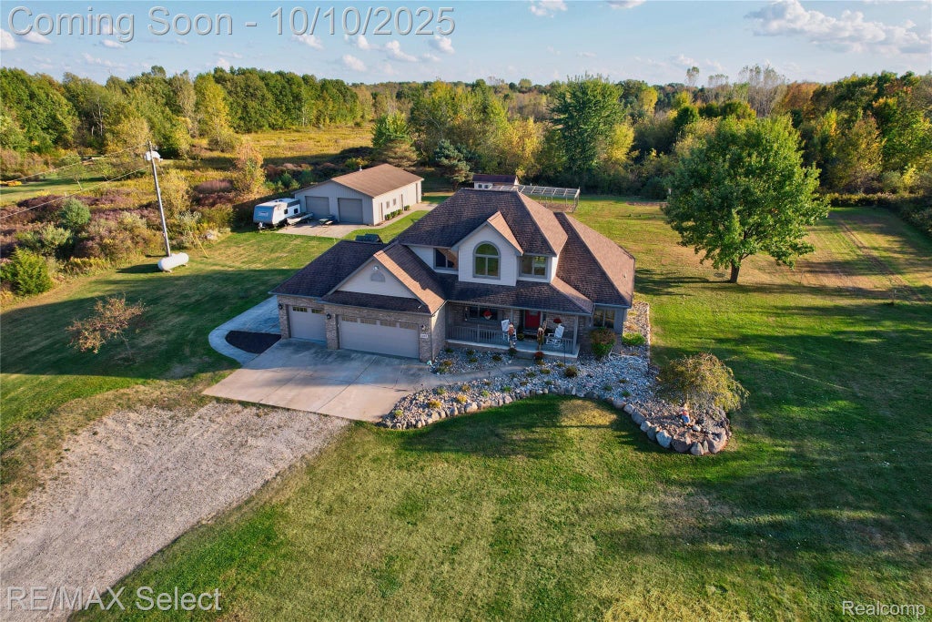 Welcome to this immaculate 3-bedroom, 2.5-bath home offering 2,115 sq. ft. of thoughtfully designed living space surrounded by 15.2 acres of peaceful country living, located in the Swartz Creek School District. Step inside to soaring cathedral ceilings and expansive windows that fill the home with natural light. The kitchen features oak cabinetry, stainless steel appliances, and a large island perfect for entertaining. It opens to a cozy breakfast nook with access to a spacious deck overlooking the scenic backyard. Gorgeous hardwood floors flow through the kitchen and formal dining area, adding warmth and character throughout. The first-floor primary suite provides the ultimate retreat with a private deck, dual sinks, a jetted tub, walk-in shower, and a generous walk-in closet. Convenient main-level laundry and a half bath add to the functionality of this home. Upstairs, you’ll find two additional bedrooms, a full bath, and an open loft area—perfect for a home office or reading nook. The basement features 9-foot ceilings and plumbing for an additional bath, ready for your finishing touches.