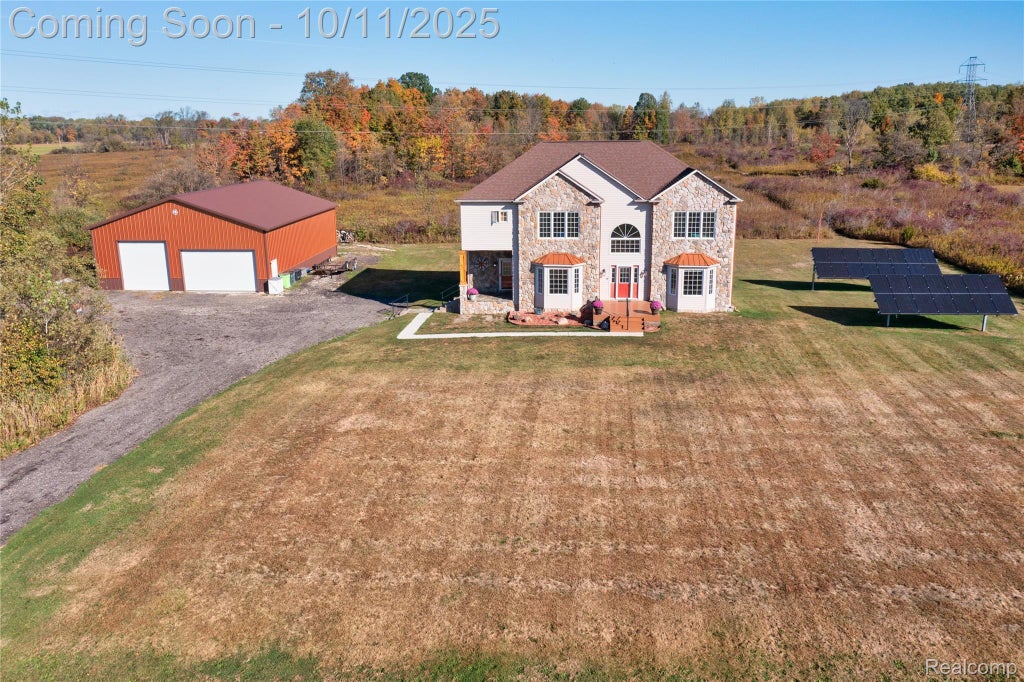 Welcome to this stunning 4-bedroom, 2.5-bath home, nestled on 8.01 acres of beautiful, huntable land, perfect for the outdoor enthusiast. Step inside and immediately fall in love with the vinyl plank flooring in the main living areas, large windows that fill the home with natural light, and the spacious layout that each room provides. The kitchen is a true centerpiece, featuring quality wood cabinets, stone countertops, a cozy fireplace, an eat at bar, and plenty of space for a table, along with a formal dining area, ideal for hosting friends and family. Each bedroom offers generous space for every family member to create their own personal retreat. The primary suite includes a large walk in closet and an ensuite bathroom that feels like a spa, complete with a deep soaking tub and a stand up shower. Outside, enjoy the solar panels, a large back deck with a gazebo, and room for a hot tub. The property also includes a spacious pole barn to meet all your storage needs. This home is truly a must see, schedule your showing today.