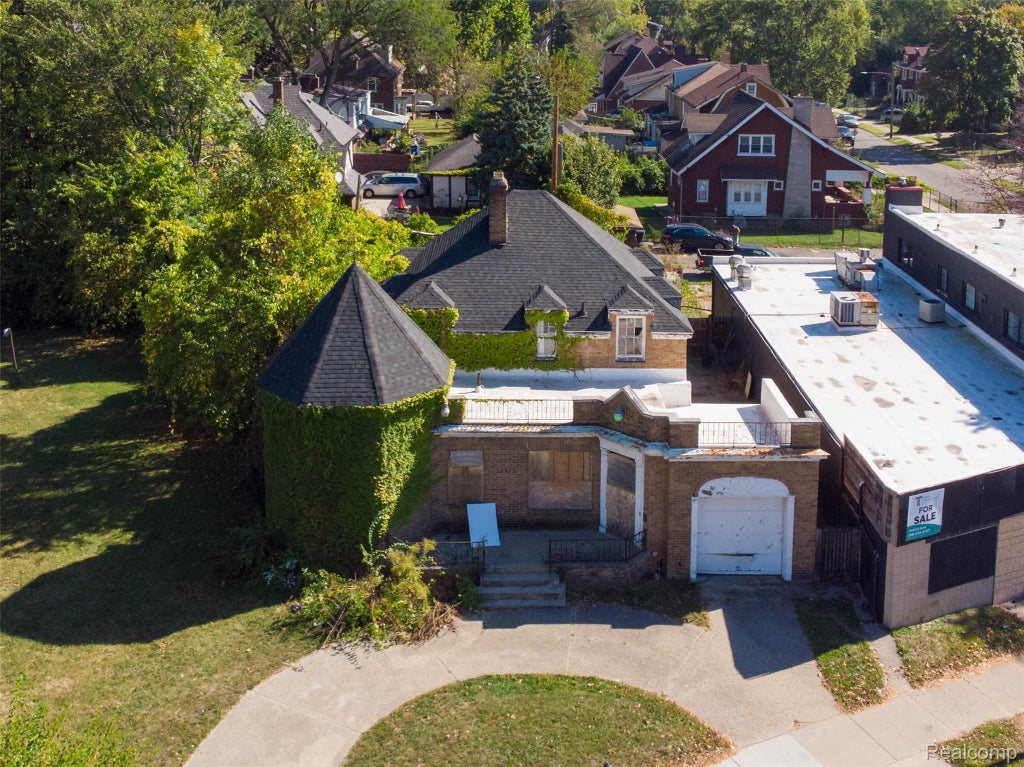 Welcome to the Woodward Estate, an exceptional opportunity to own a piece of history right off of iconic Woodward Avenue. This stunning historic property offers incredible potential as either a charming café/coffee shop or a beautifully restored residence. Originally a photography studio, the architecture is one-of-a-kind. The Turret Room, once the main studio, is a breathtaking space filled with natural light and character. The main level features a beautiful octagon-shaped front room, perfect for a reception or sitting area, with an adjacent waiting room and front restroom. A small commercial kitchen includes a three-compartment dishwashing sink. The family room boasts original hardwood floors and a cozy wood-burning fireplace, while a break area and additional restroom are located at the back of the property. Upstairs, you’ll find four spacious bedrooms, including one with private access to a rooftop patio—a rare find! The partially finished basement includes a private library room with a wood-burning fireplace, offering a quiet retreat or unique meeting space. Whether you're an entrepreneur looking to bring your vision for a restaurant to life, or a homebuyer seeking a unique historic residence, this property is full of potential and character in an unbeatable location.