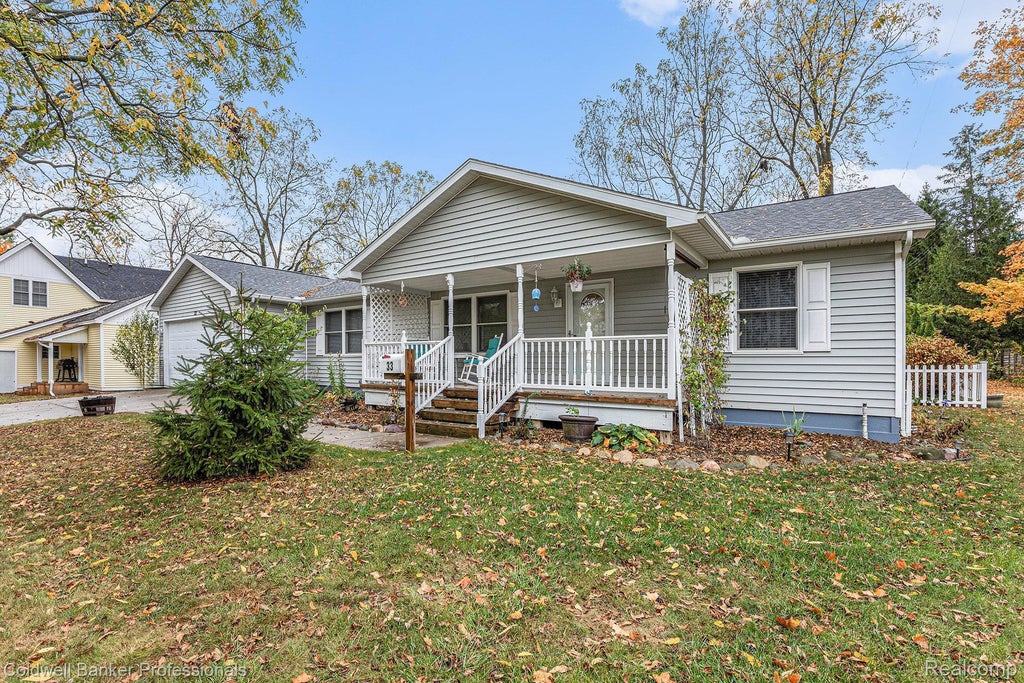Beautifully maintained home welcomes you with a lovely covered front porch. Open floor plan with a living room gas fireplace. Kitchen offers plenty of cabinet space and an island. Dining room patio door looks out onto the fenced back yard. Bedrooms are spacious. Primary bedroom features an updated bathroom with roomy walk-in tiled shower. First floor laundry room with convenient storage. New carpet and paint throughout. Wood basement is unfinished for your personal touch and very comfortable. Garage offers room for storage and a separate heating unit. Cement driveway. Property has an alley to the west for easy access to backyard. This home is just blocks away from Historic Downtown Lapeer, trails and library. Convenient to local shopping and movie theater. Come see this lovely gem! Surveillance cameras are on/in the property.