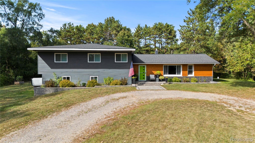 Open house cancelled. Where Living Really Is a VACATION -- This COMPLETELY Rebuilt home is in the PERFECT Location in Orion Twp. Sitting on over 1.5 acres, no association and faces Indianwood golf course. The sidewalk next door leads you right to the Polly Ann Trail. Almost 3000 sqft of GORGEOUS living space with EVERYTHING you want in a house. 4 Bedrooms & 3 Full Baths. OPEN concept kitchen and living space with tons of room to entertain! Kitchen has Quartz counters, soft close cabs & stainless steel appliances & counter seating. Opens to formal dining w/stunning views of the yard & doorwall to covered patio!! Large 1st Floor Bed/Full Bath combo has Stand up shower & floating cab. The massive ceilings that separate the home is LOADED with light from the skylights to add that WOW factor. Upstairs has 3 HUGE bedrooms, both guest rooms have enormous closets and charging stations. Full bath has skylight, marble counter & gorgeous custom tile. The Primary suite had a room added, to create a custom WIC with full private laundry. The attached Bathroom has a massive stand up shower with no step custom tile, double sinks & built in towel warmer. Downstairs is another entertainment area that has a really cozy finished family room with full wet bar & fireplace, both with quartz counters. Perfect for a movie or game and has doorwall to 2nd patio with brick pavers and 6 person hot tub. After your dip, dry off in the main laundry/mud room. Also has built in dog wash station. Flex room that could be a den or storage! Remodeled in 2020 to the studs all new mechanicals, well, softener, sewer lines, roof etc. The property is gorgeous and perfectly tree lined, pool can be removed if desired. Wall could be re-added in the living room to recreate 5th bedroom, if needed. Circular Driveway & yard has plenty of room to add 2nd garage or pole barn. Property to the west has a pond that brings wildlife. Award Winning Lake Orion Schools - This really is a must see. Agent owned.